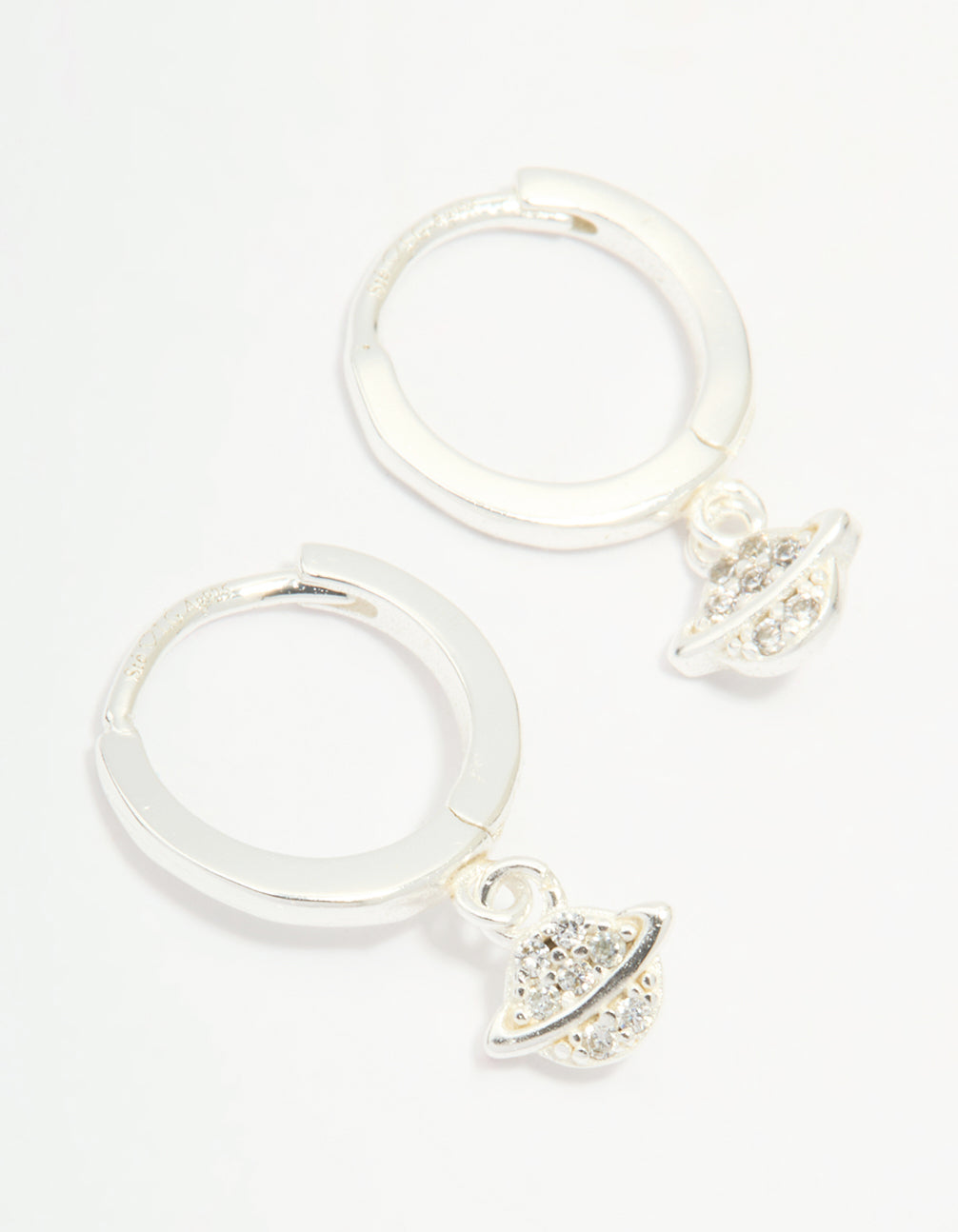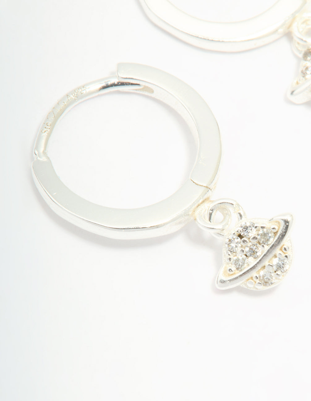 Sterling Silver Cubic Zirconia Planet Huggie Earrings