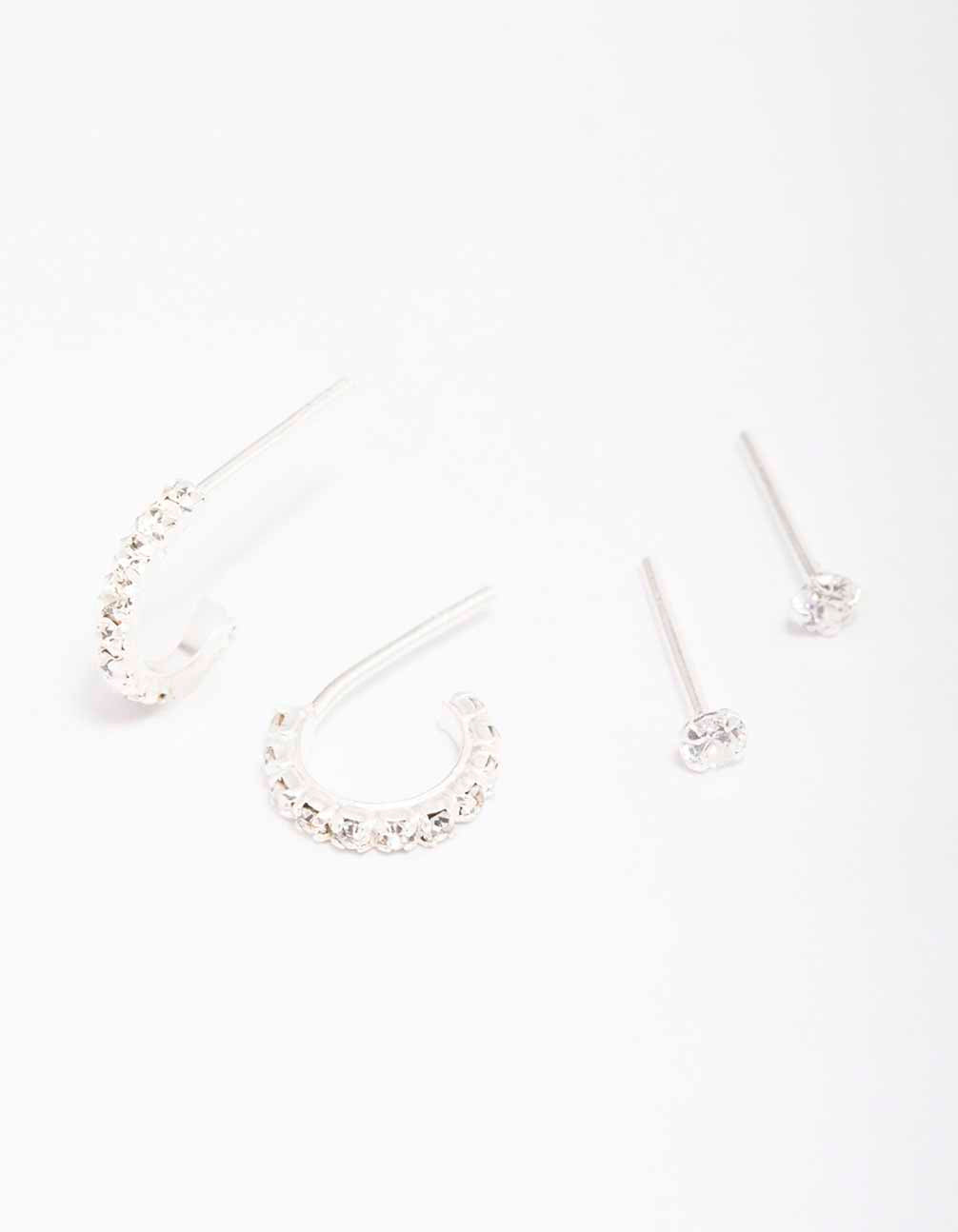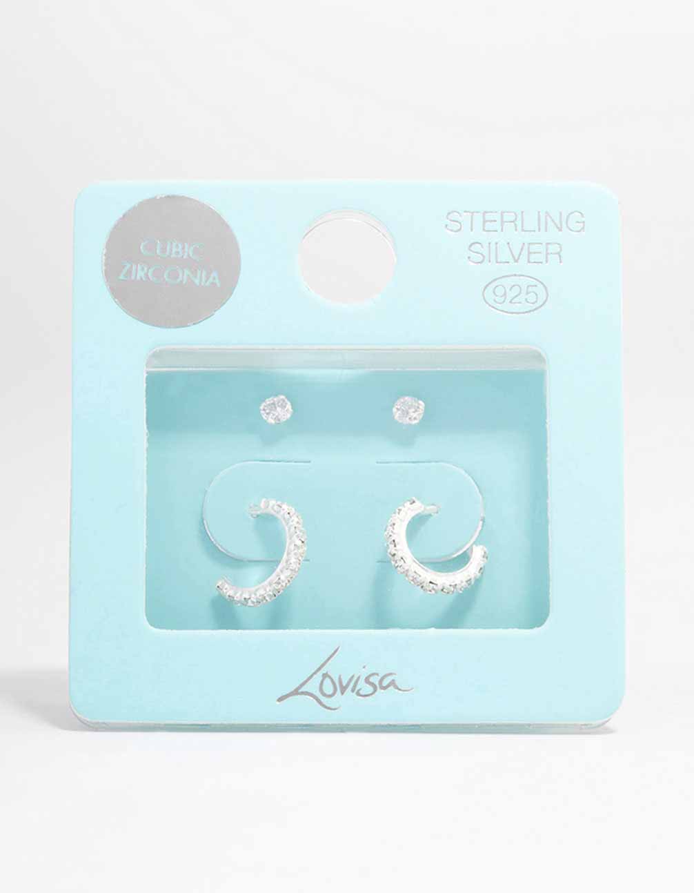 This earring pack contains two sets of sterling silver earrings, encrusted with cubic zirconia crystals for a touch of sparkle.