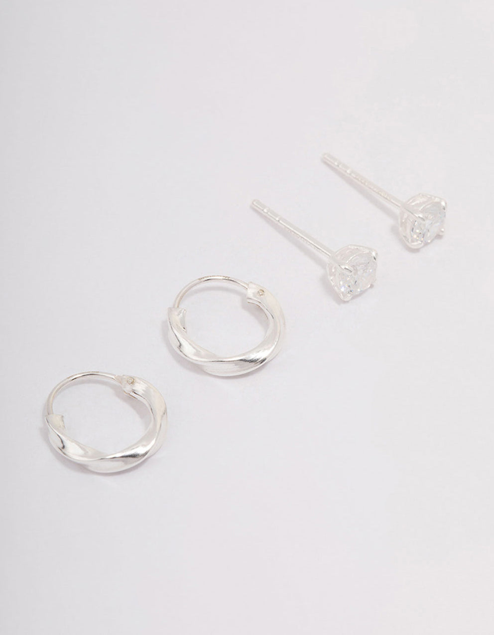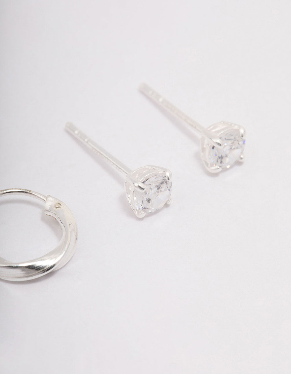 Add a premium touch to your everyday stack with this set of sterling silver earrings. This earring pack includes a pair of huggies and set of cubic zirconia studs. Perfect for everyday wear!