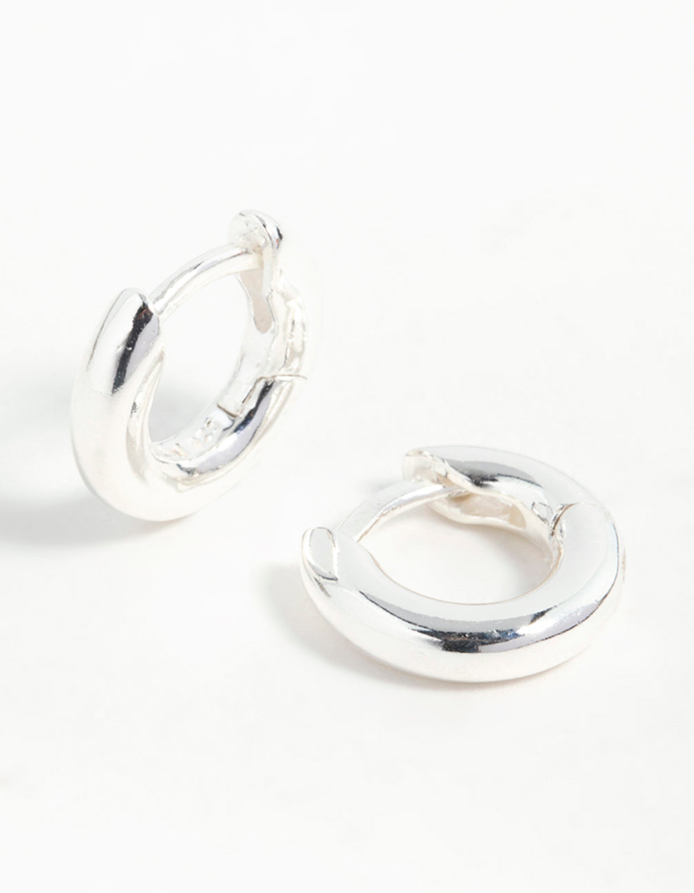Invest in sterling-silver accessories! These dainty, silver huggies boast a chubby design. Wear them daily.