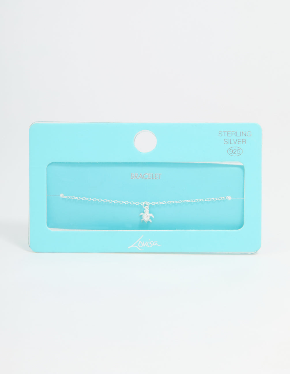 Dive into style with the Sterling Silver Turtle Bracelet! This sleek, polished bracelet features a charming turtle charm, perfect for sea life enthusiasts. Ideal for everyday wear or special occasions, it pairs well with summer dresses, jeans, or swimwear.