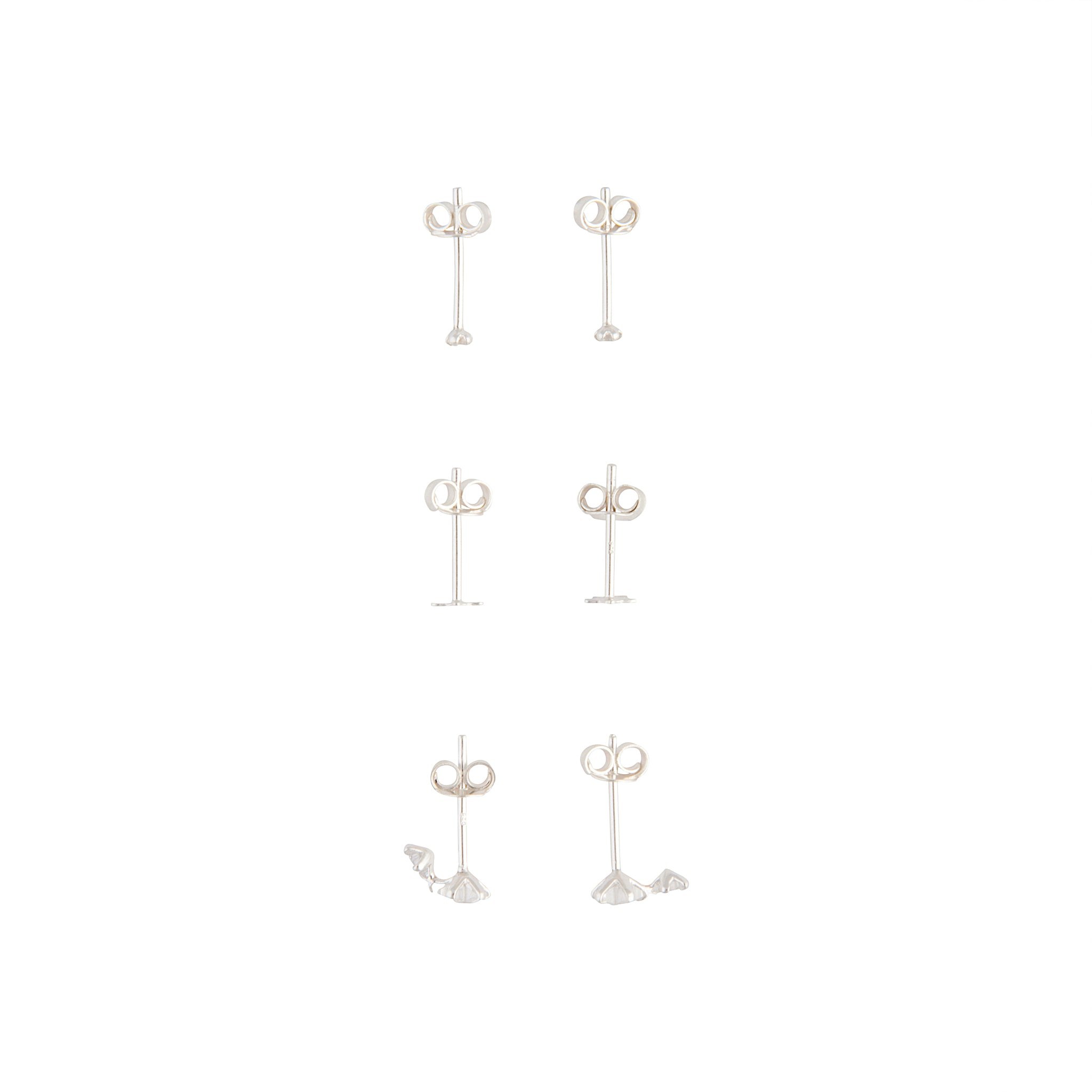 A trio of celestial themed studs in sterling silver.