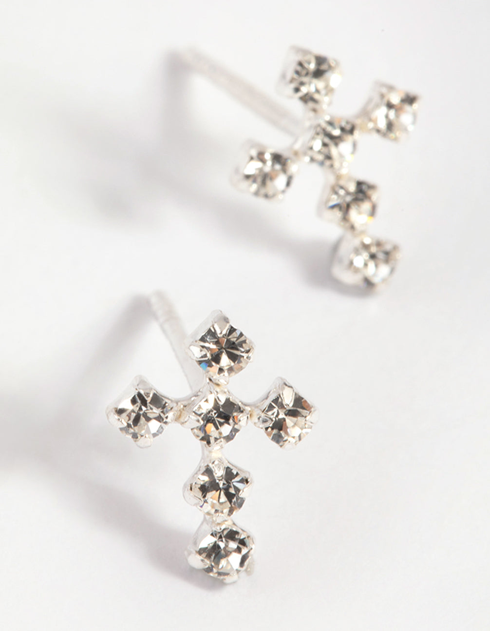 Sterling Silver Cubic Zirconia Cross Stud Earrings