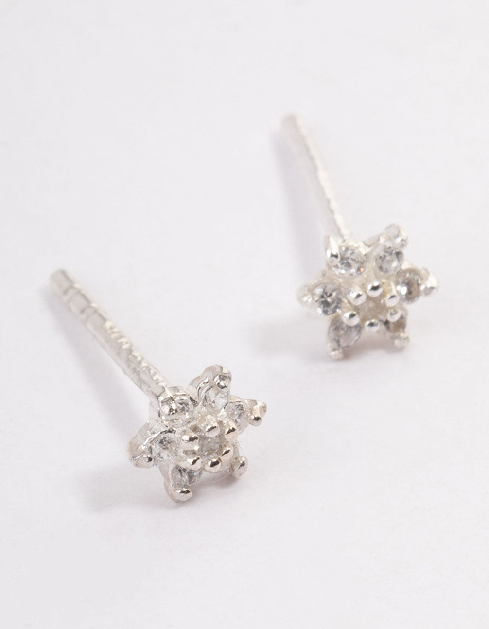 Sterling Silver Cubic Zirconia Flower Stud Earrings