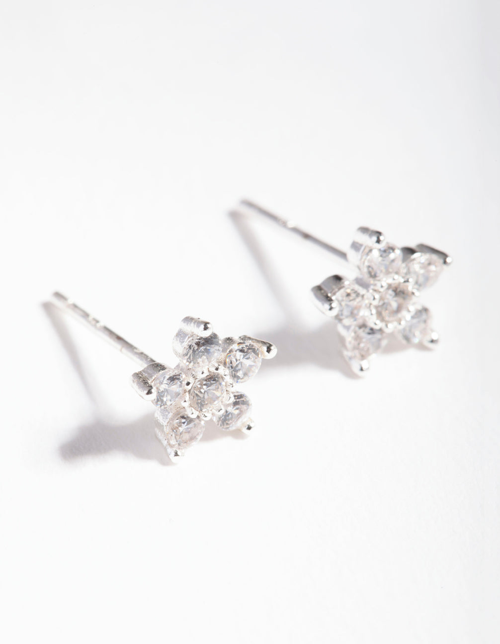 Sterling Silver Cubic Zirconia Flower Stud Earrings