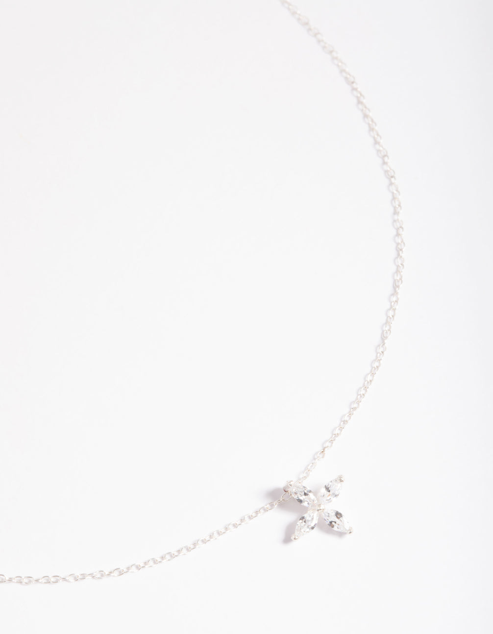 Sterling Silver Cubic Zirconia Marquise Cross Necklace