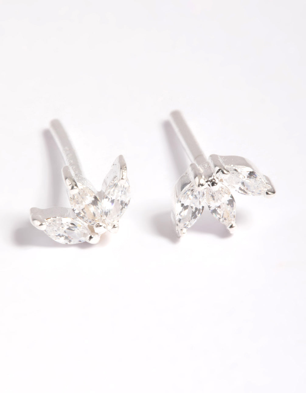Sterling Silver Cubic Zirconia Leaf Stud Earrings