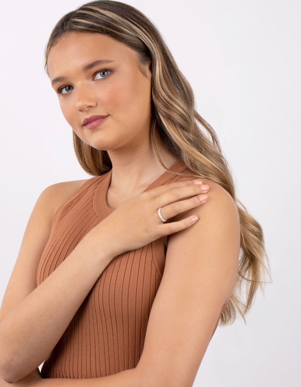 Sterling silver accessories are both reliable and fashionable. Complete your collection with high quality sterling silver pieces. This ring features a textured diamante design.