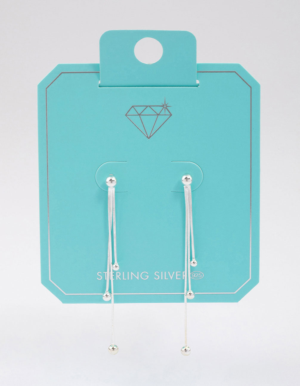 Sterling Silver Dangle Chain Ball Drop Earrings