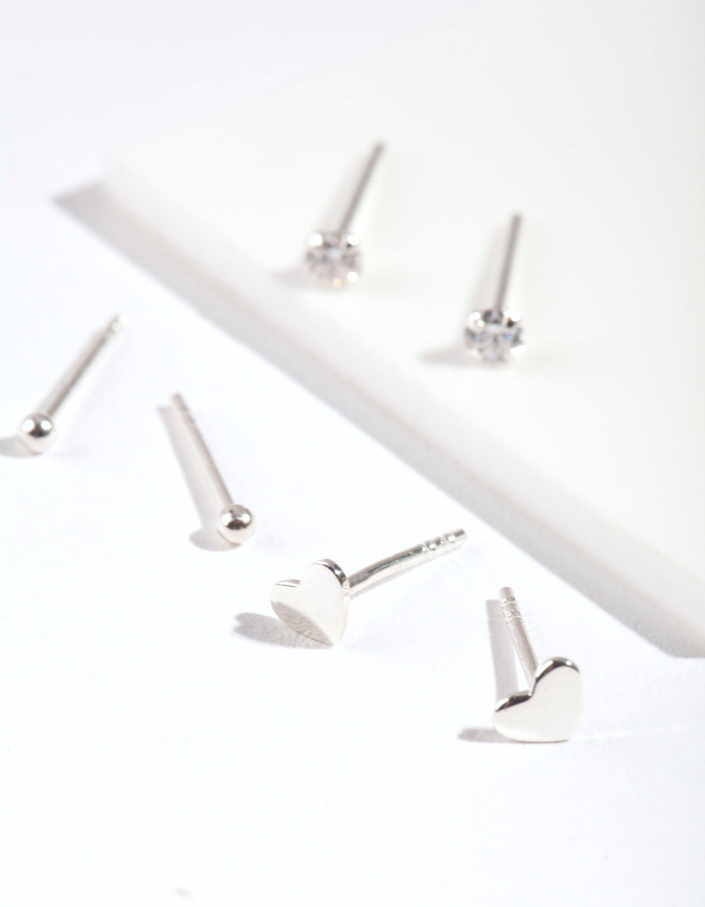 Sterling silver styles are perfect for everyday wear. Round out your collection with quality essentials. This pack features a trio of classic stud earrings.