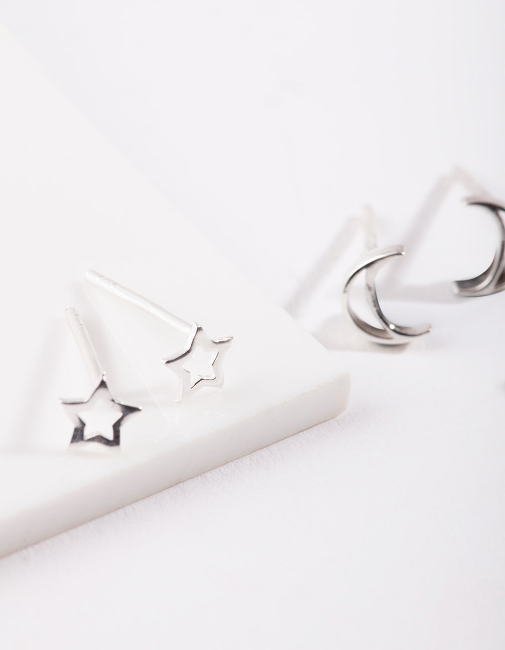 Sterling silver styles will never go out of fashion. This pack comes with a trio of styles in a celestial motif.