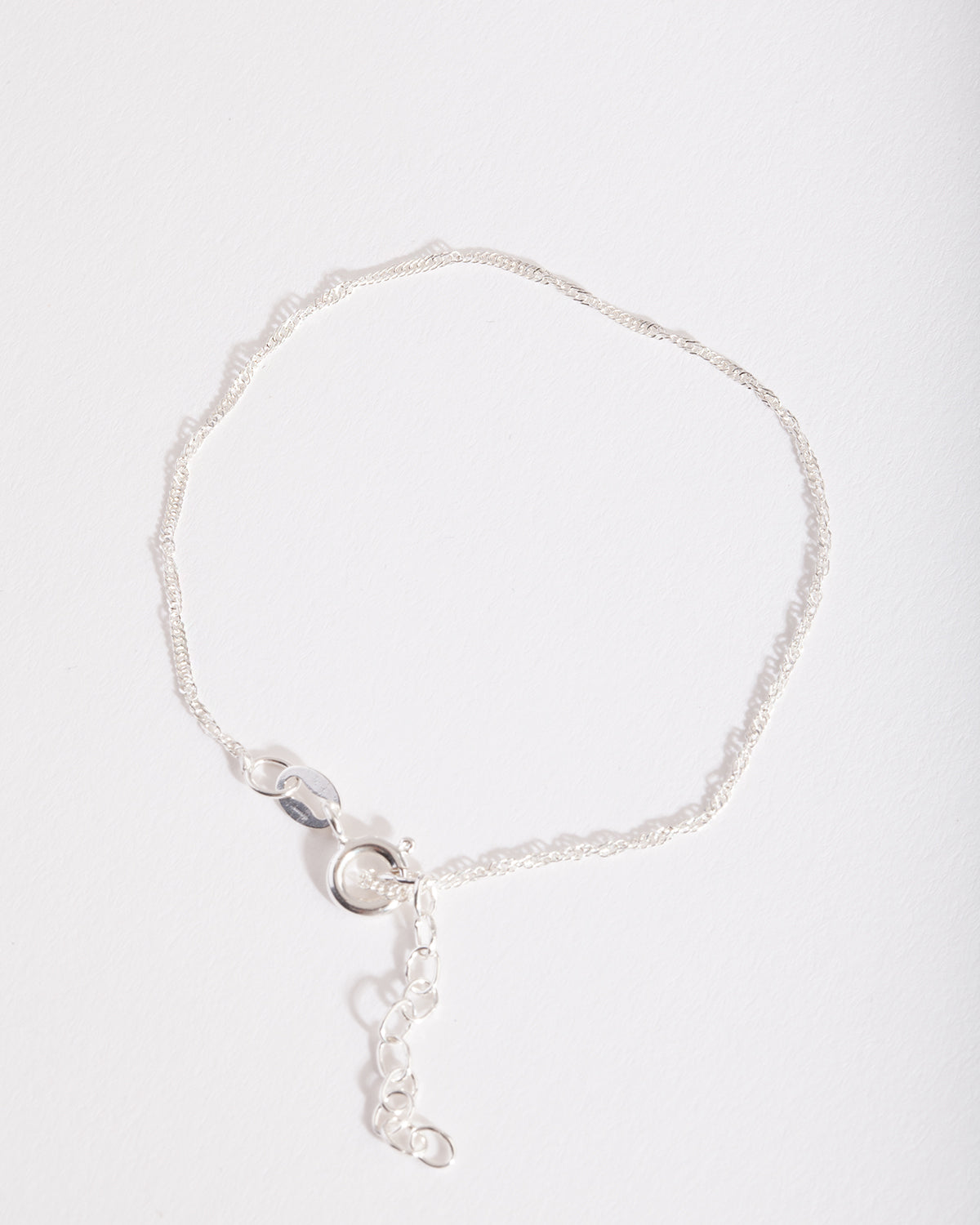 A stand-out choice in Italian made sterling silver, this fine Singapore chain bracelet will adorn any outfit. Perfect on its own, but equally ideal when layered with other styles, this versatile bracelet will complete any ensemble.