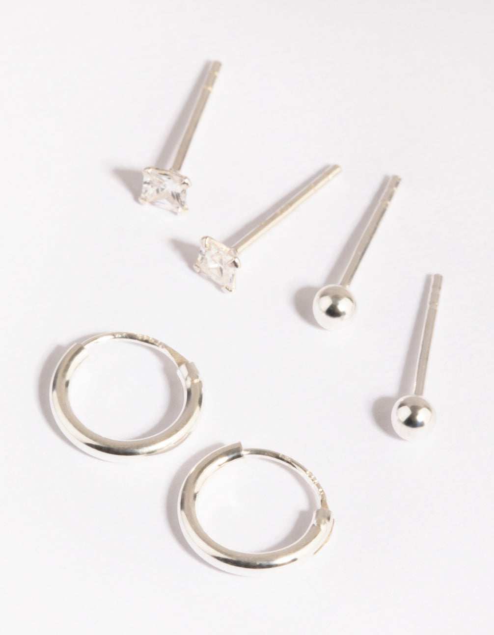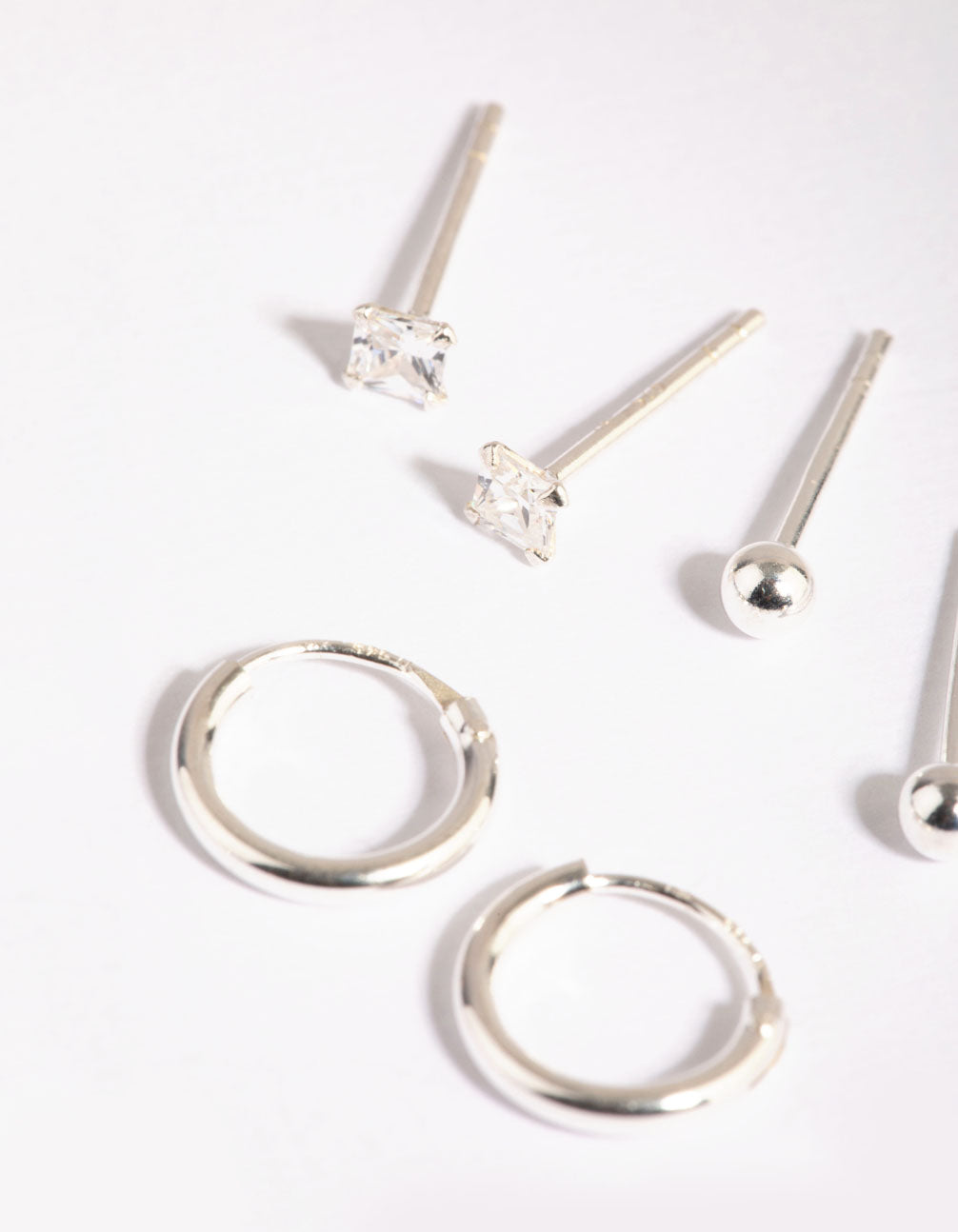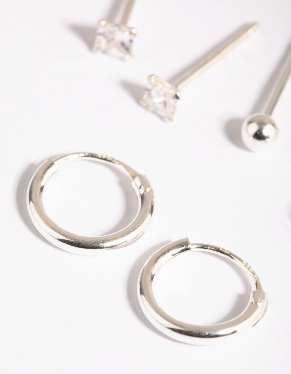 Sterling Silver Diamante Stud & Hoop Earring Pack