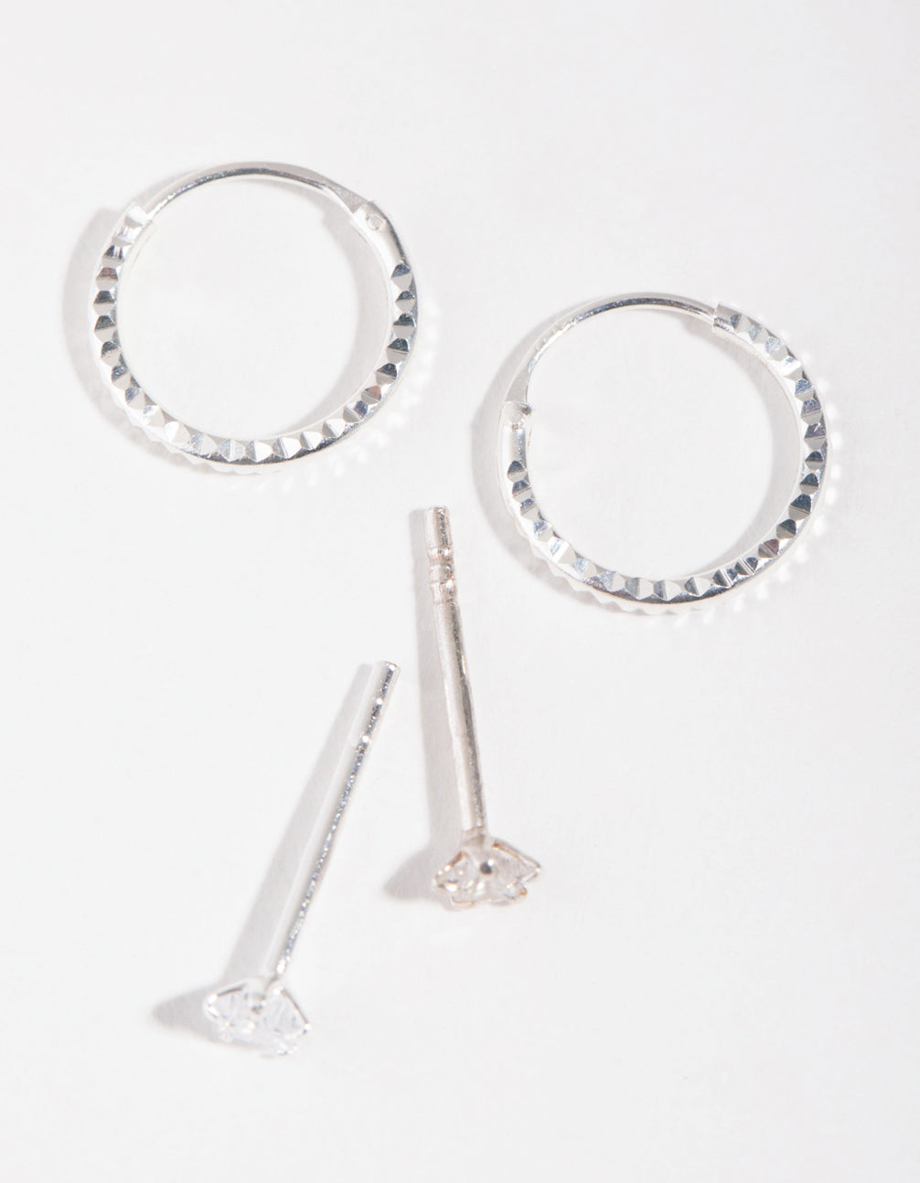 Invest in some quality basics that are perfect for everyday wear. These earrings are made from sterling silver so they're gentle on ears. This pack includes two silver earrings, one pair of sleeper hoops and one delicate pair of star-shaped studs.