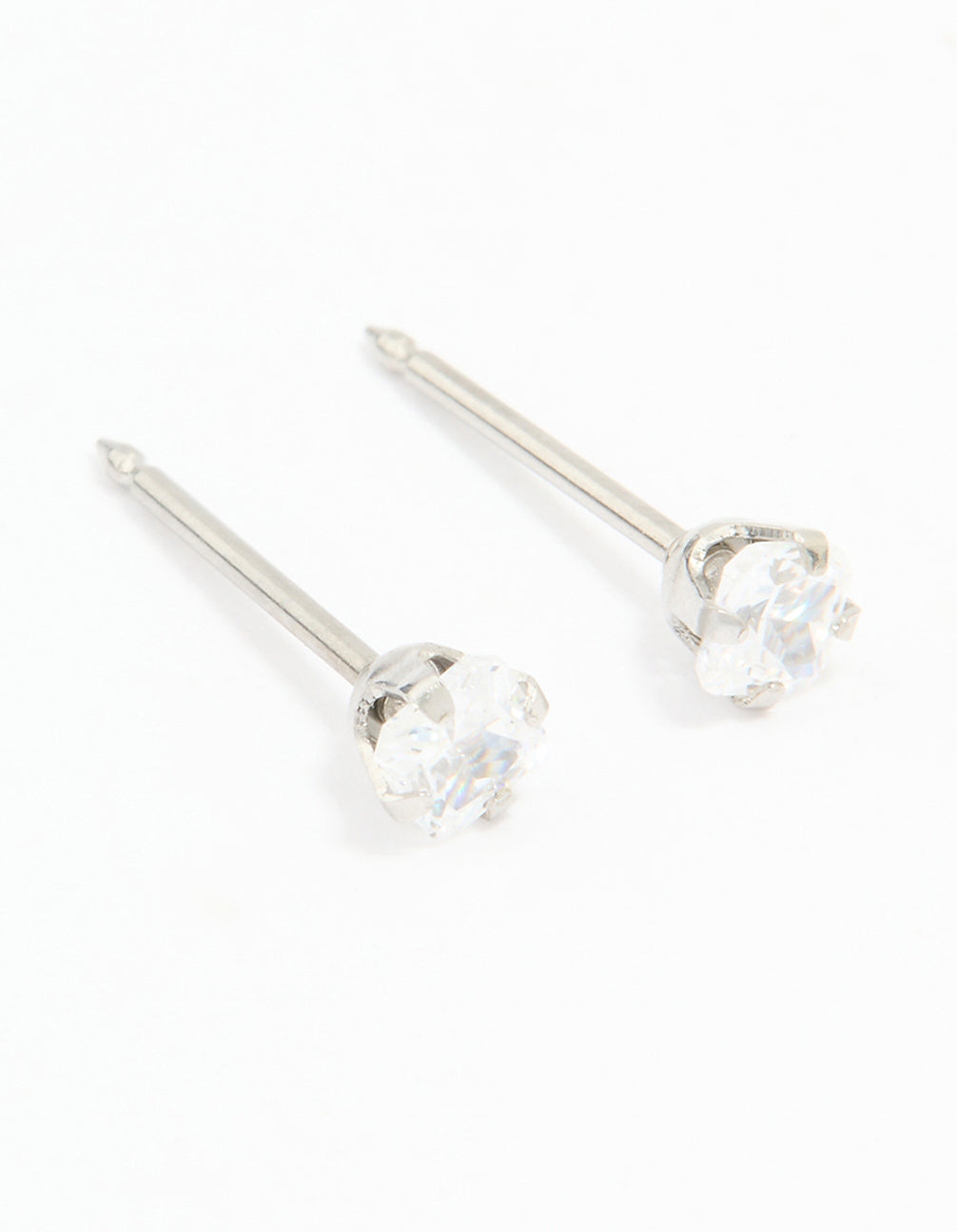 Surgical Stainless Steel 3X3MM Cubic Zirconia Princess Cut Piercing Stud