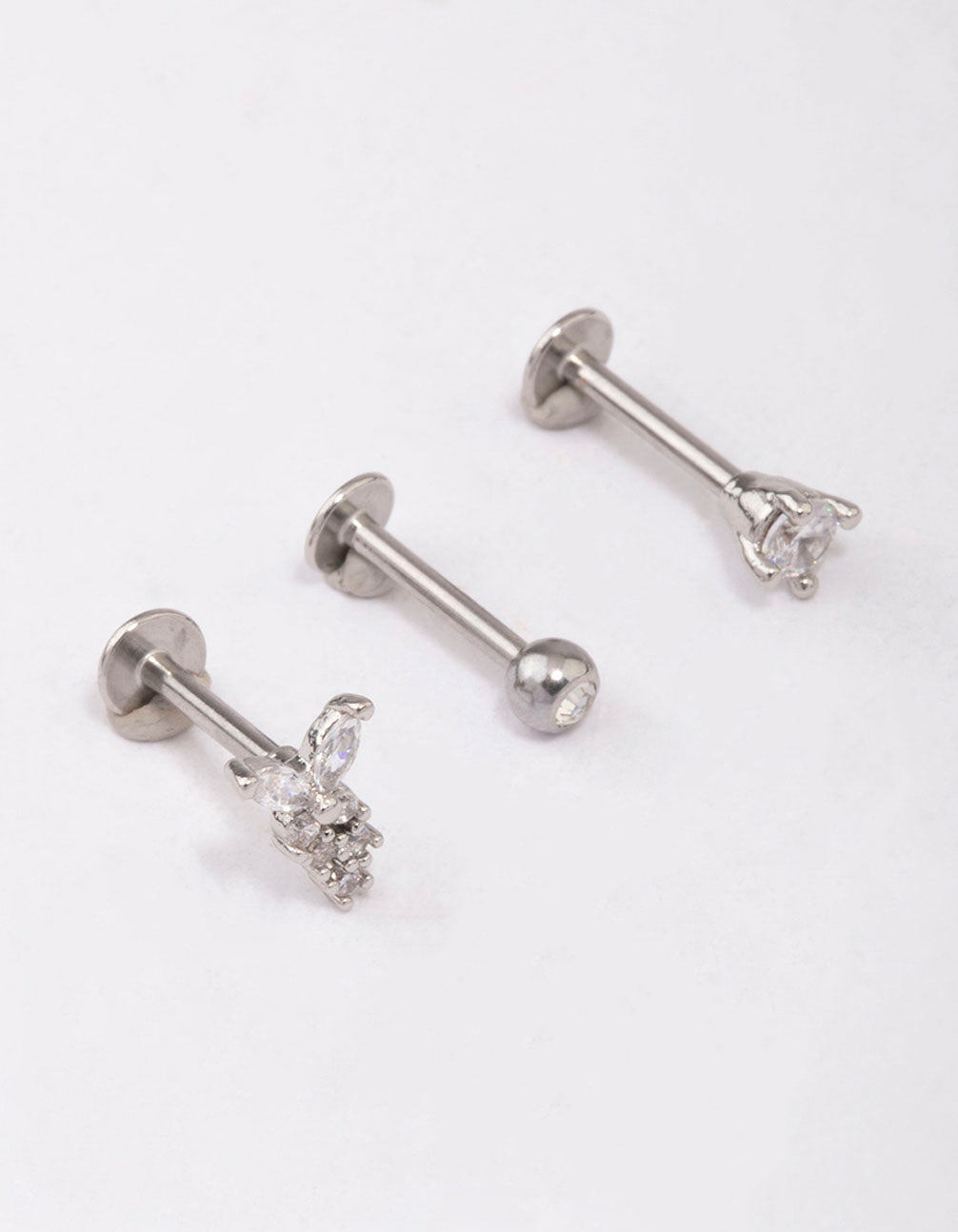 This pack features three, surgical steel flat backs adorned with crystal butterfly motifs for a hint of glamour.