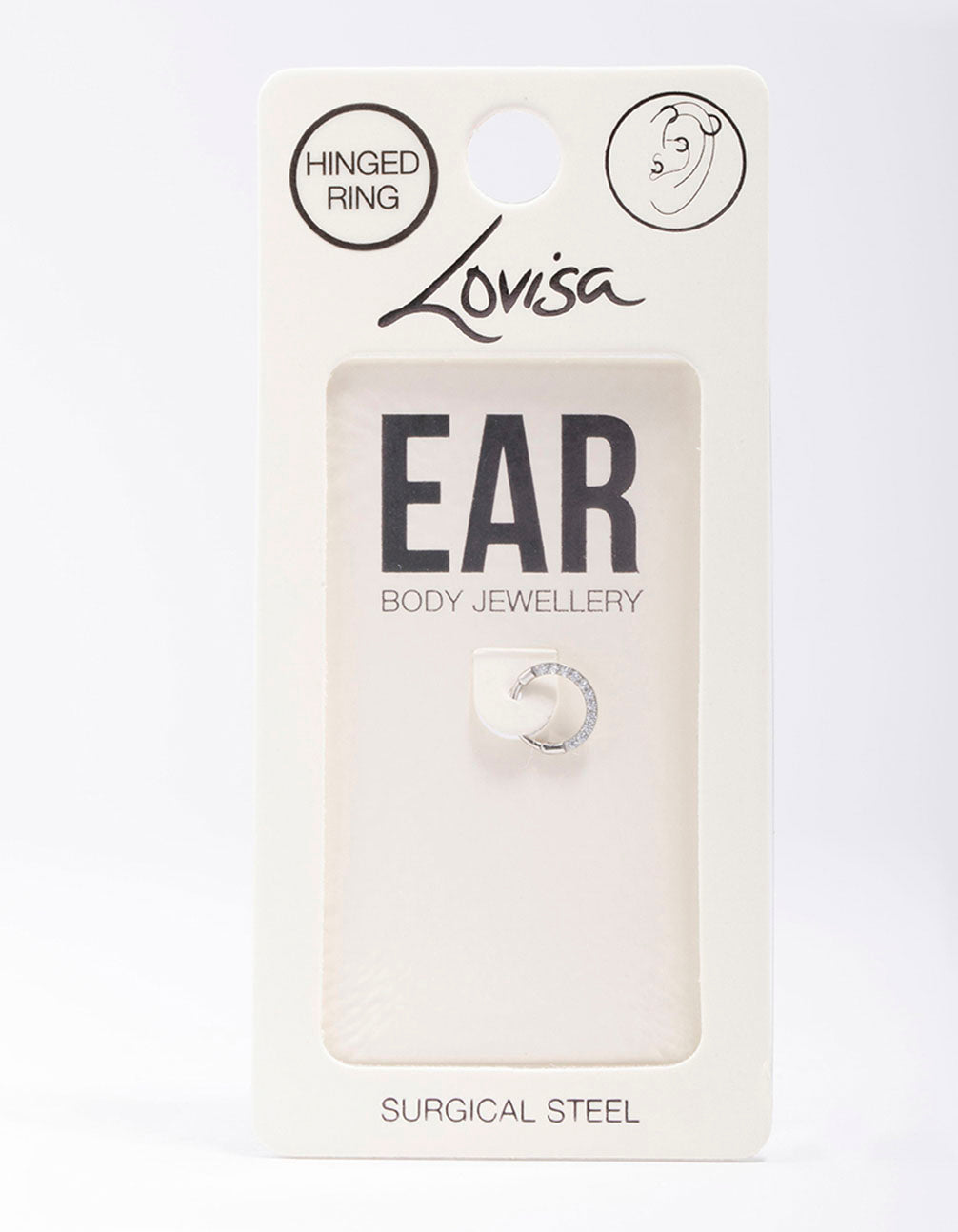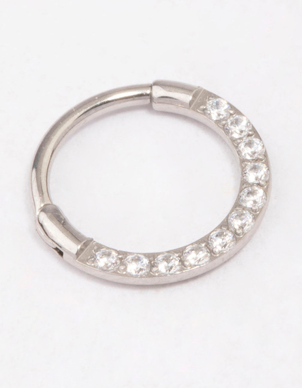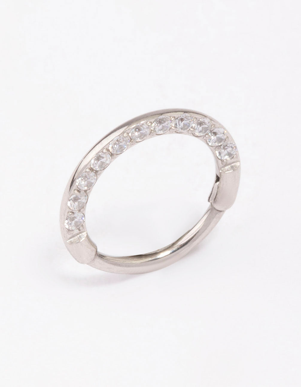 Style this cubic zirconia clicker ring as a helix, conch, rook, tragus or septum piercing.