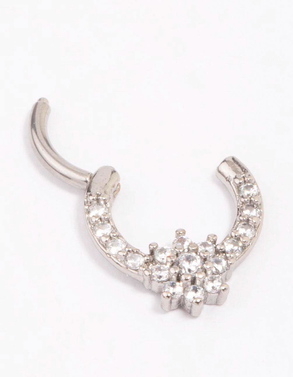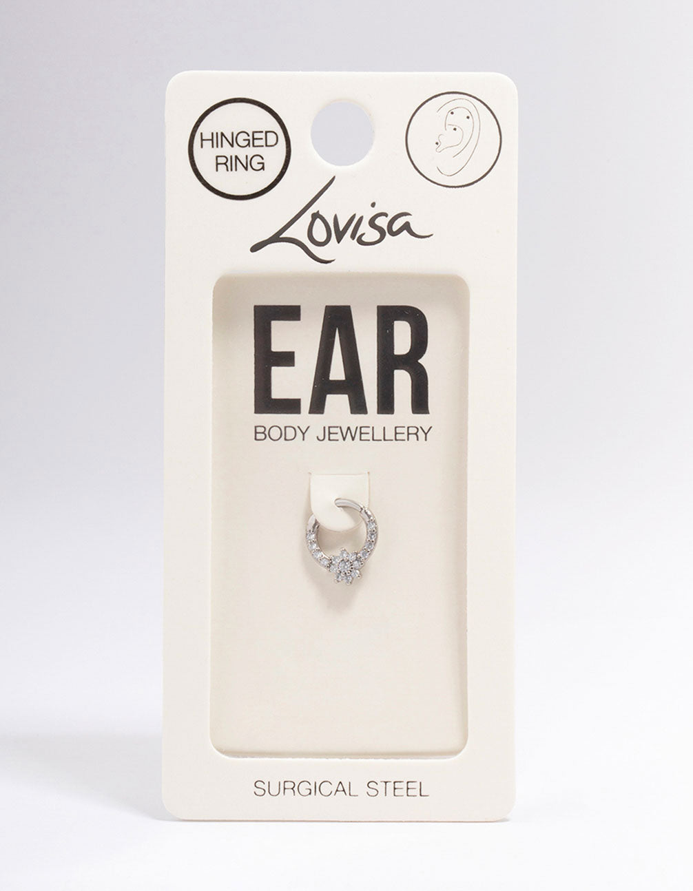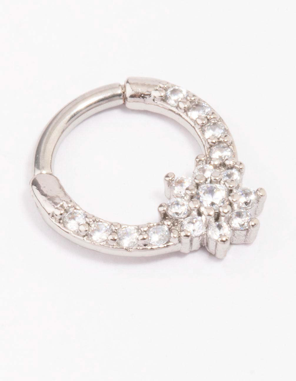 Surgical Steel Cubic Zirconia Flower Clicker Ring