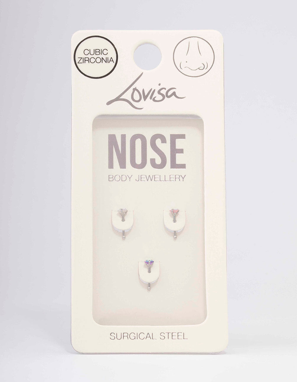 Surgical Steel Cubic Zirconia Heart Nose Piercing 3-Pack Surgical Steel Cubic Zirconia Heart Nose Piercing 3-Pack Surgical Steel Cubic Zirconia Heart Nose Piercing 3-Pack