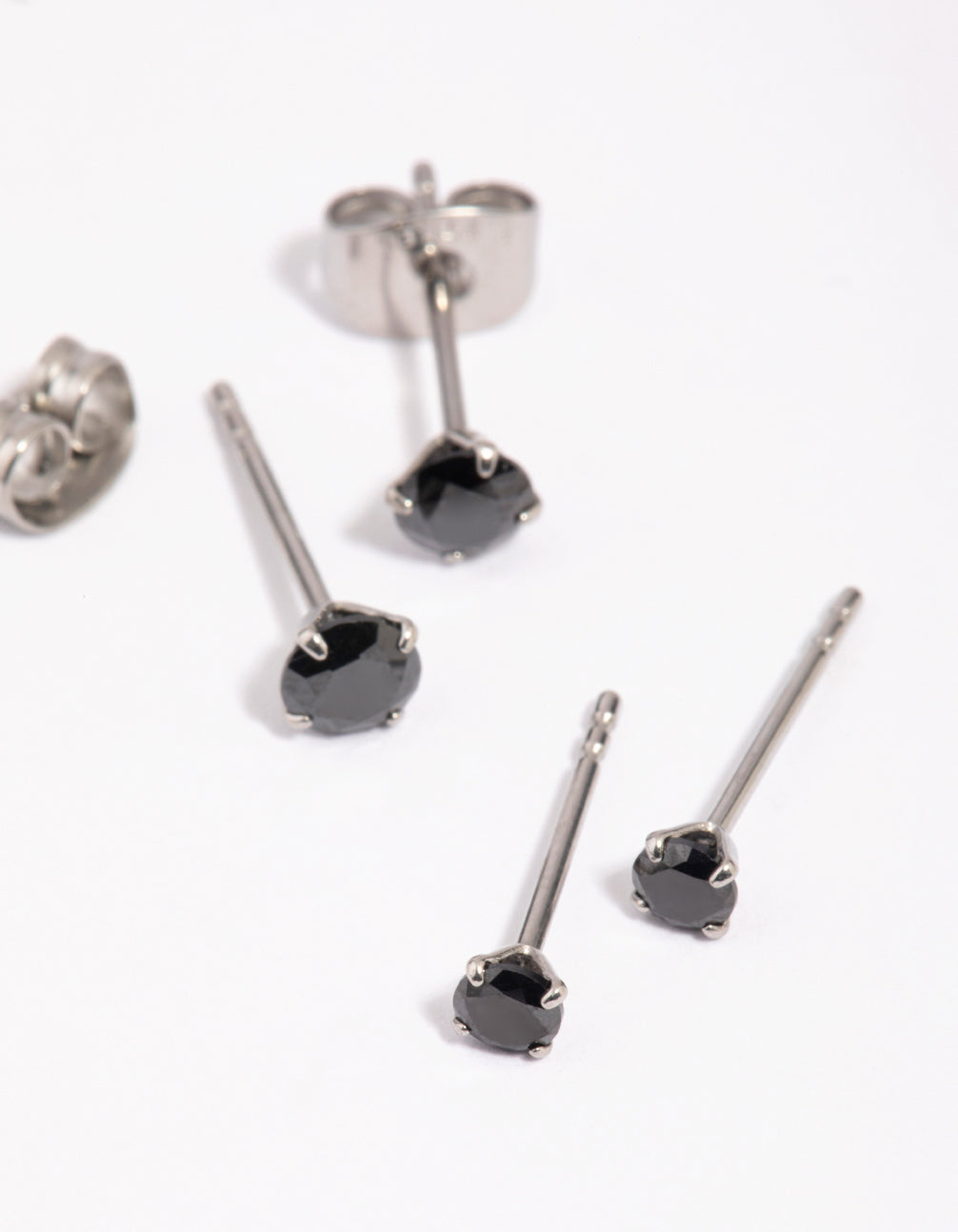 Surgical Steel Graduating Black Cubic Zirconia Stud Earrings 2-Pack