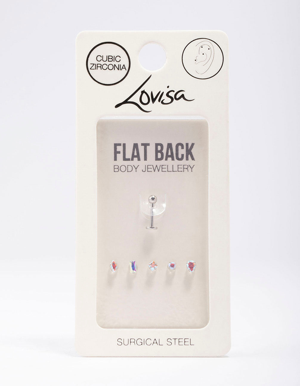 Surgical Steel Iridescent Cubic Zirconia Flat Back Pack