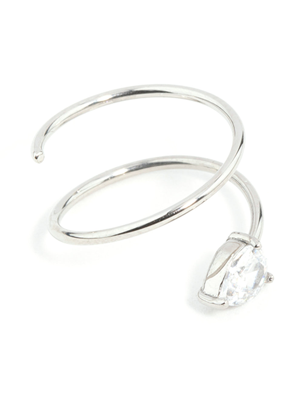 Jazz up your nose piercing game with this fun nose ring. This nose ring features an unique spiral design and a pear shaped cubic zirconia crystal for added sparkle. Crafted from hypoallergenic surgical steel for long-lasting comfort.