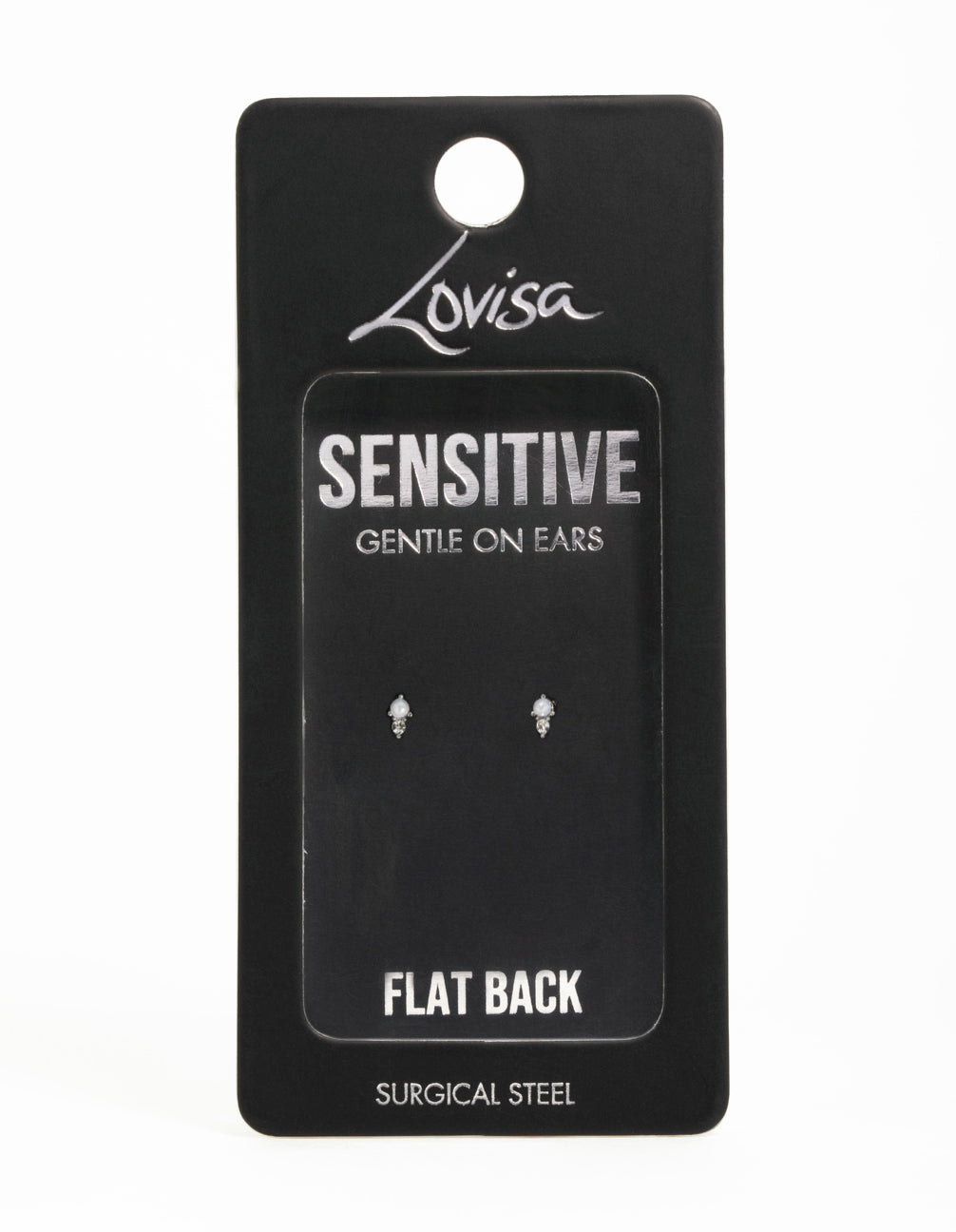 Surgical Steel Pearl Diamante Flat Back Earrings