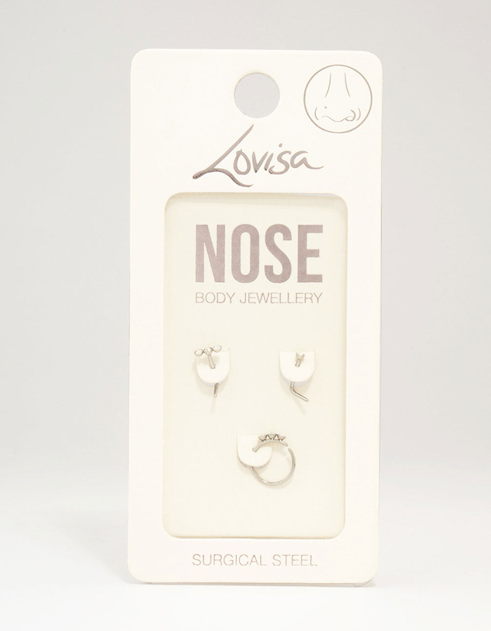 Customise your nose piercing with our selection of premium, surgical steel piercing jewellery. This nose piercing pack includes three individual piercings, each crafted from genuine surgical steel. Perfect for styling everyday!