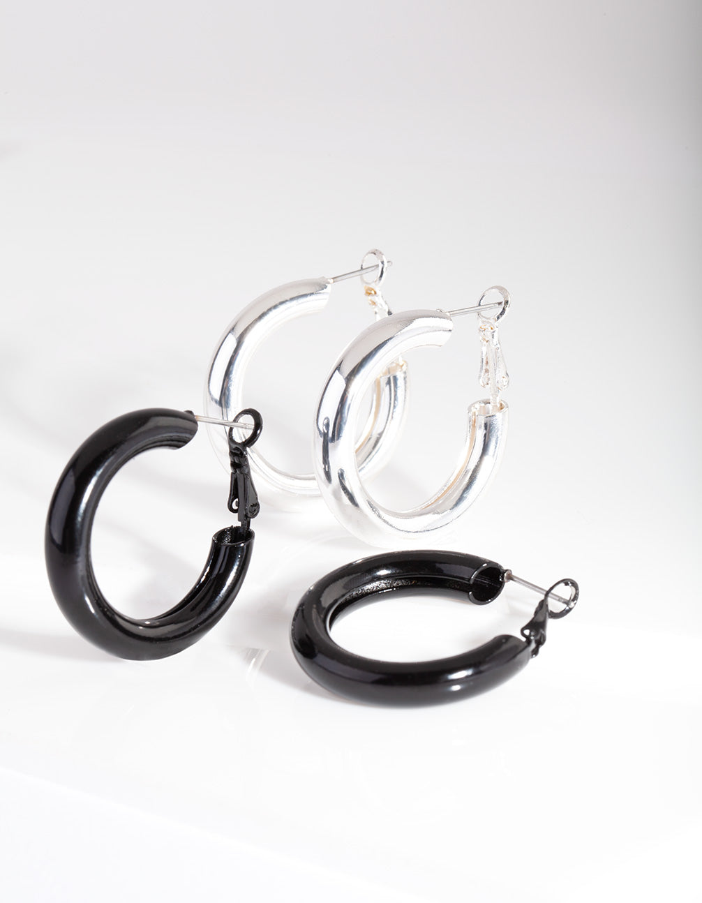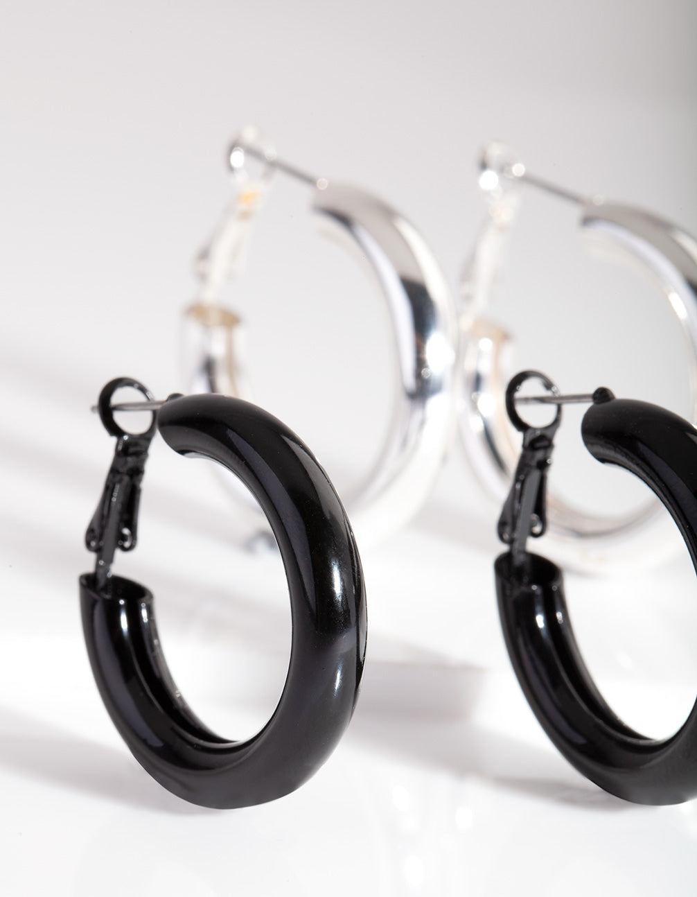 Black Silver Hoop Earrings Duo Black Silver Hoop Earrings Duo Black Silver Hoop Earrings Duo