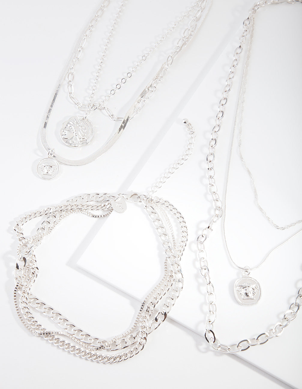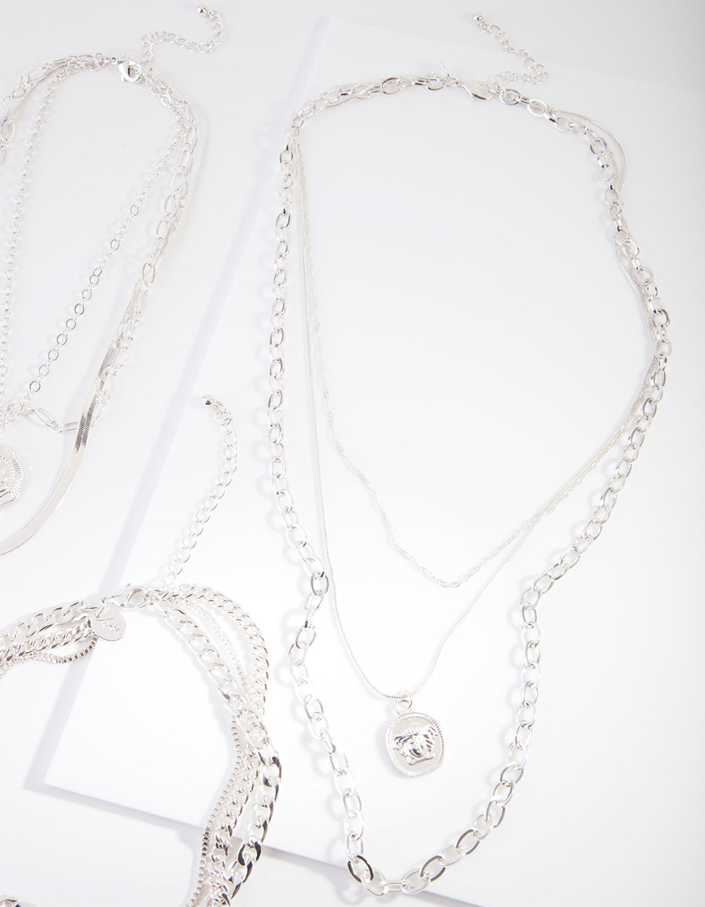Rhodium Layered Goddess Necklace Rhodium Layered Goddess Necklace Rhodium Layered Goddess Necklace