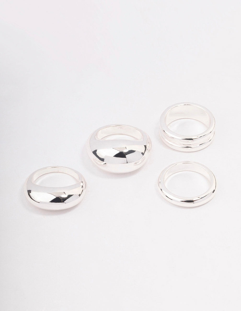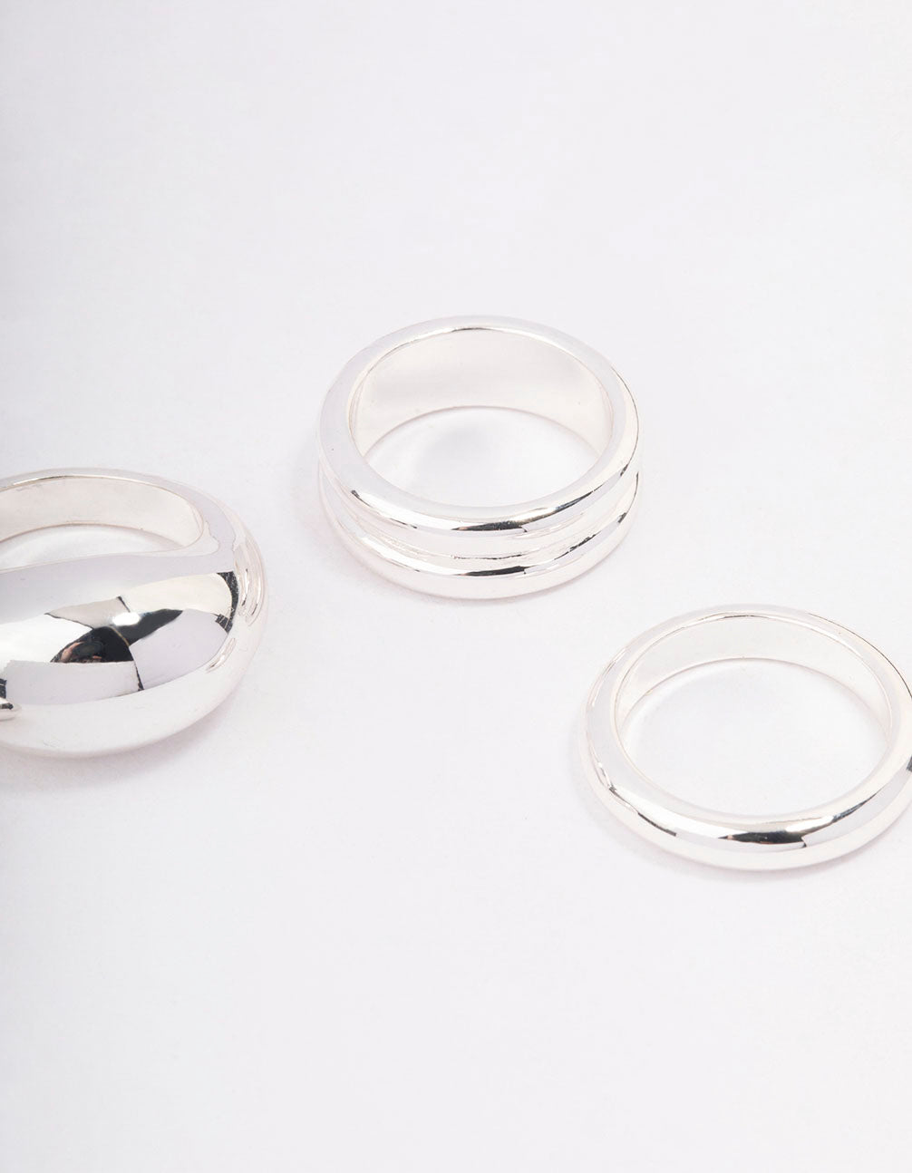 - Embellish your look with this pack of unique and modern Silver Organic Smooth Rings.