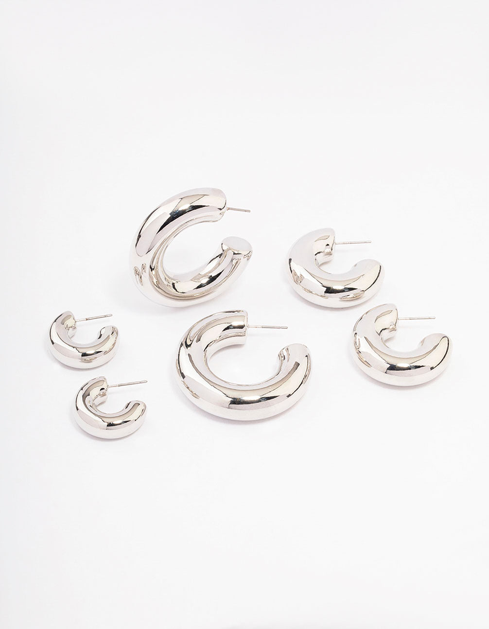 • This Silver Thick Smooth Hoop Earring Pack contains three sets of chunky hoops for a modern 'it-girl' finish to your look.