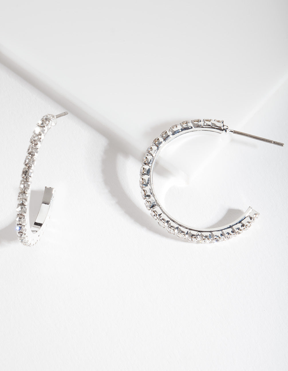 Glam up any outfit with these silver-toned diamante hoop earrings.
