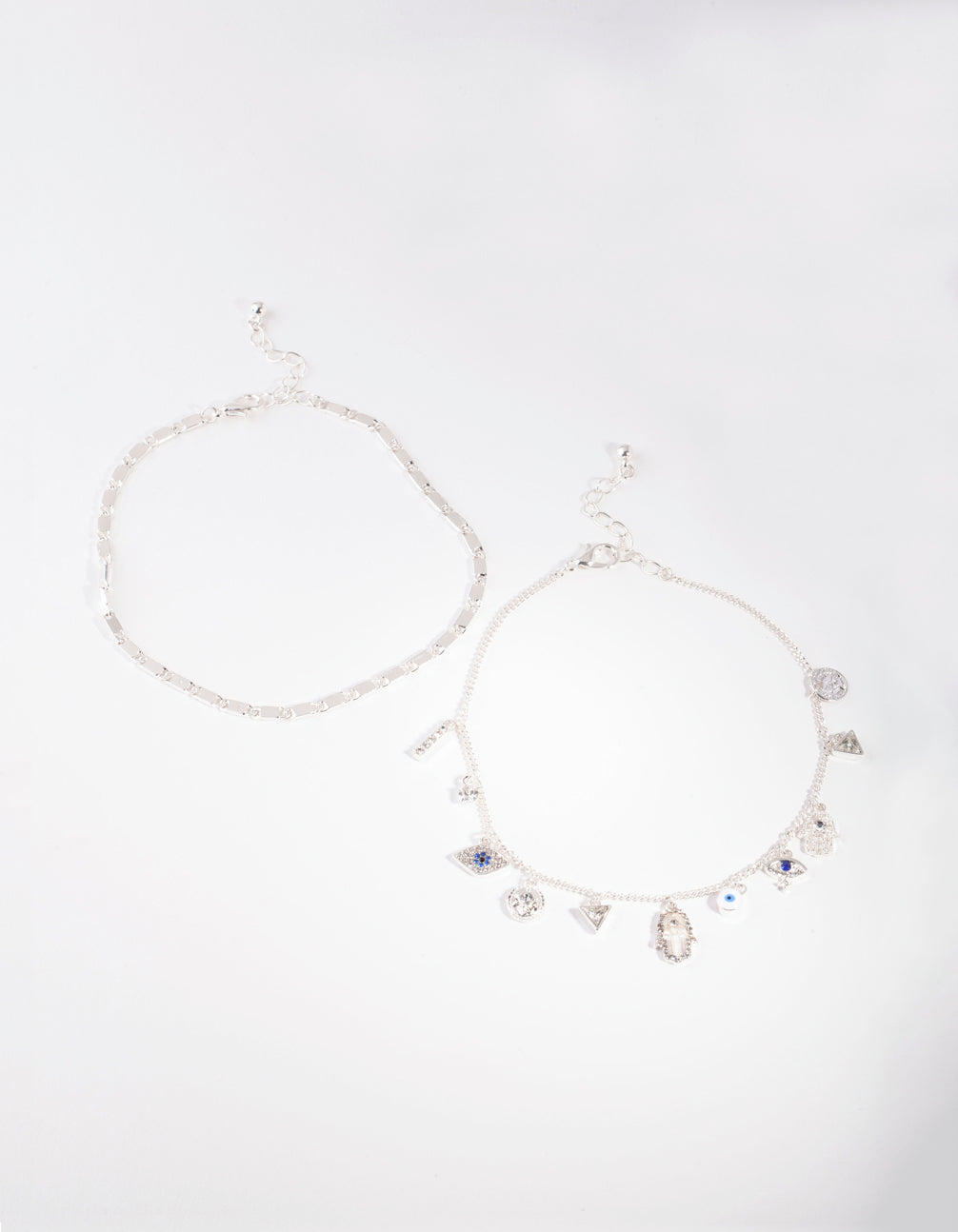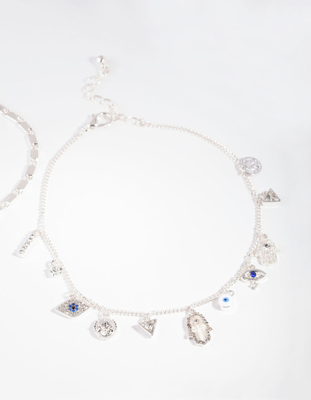 Silver Evil Eye Charm Anklet Set Silver Evil Eye Charm Anklet Set Silver Evil Eye Charm Anklet Set