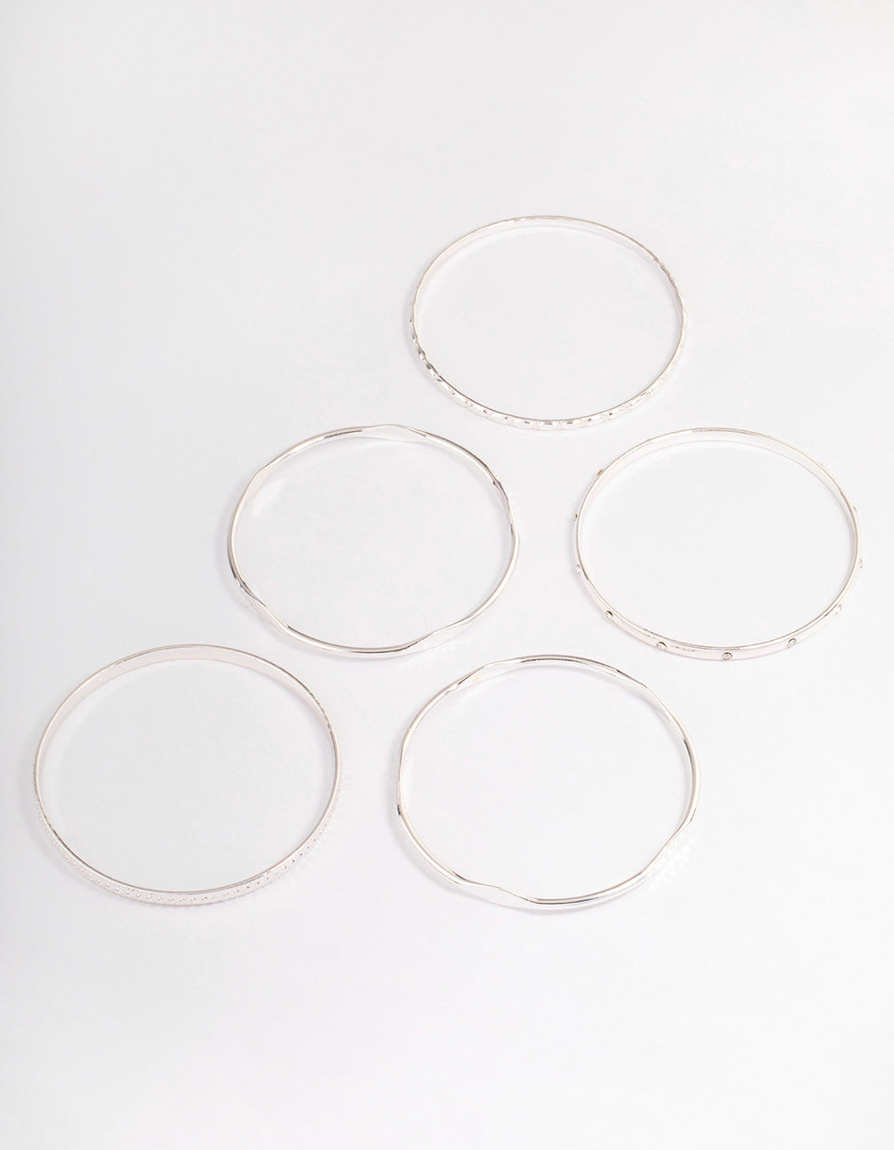 • Silver Mixed Hammered Bangle 5-Pack - link has visual effect only