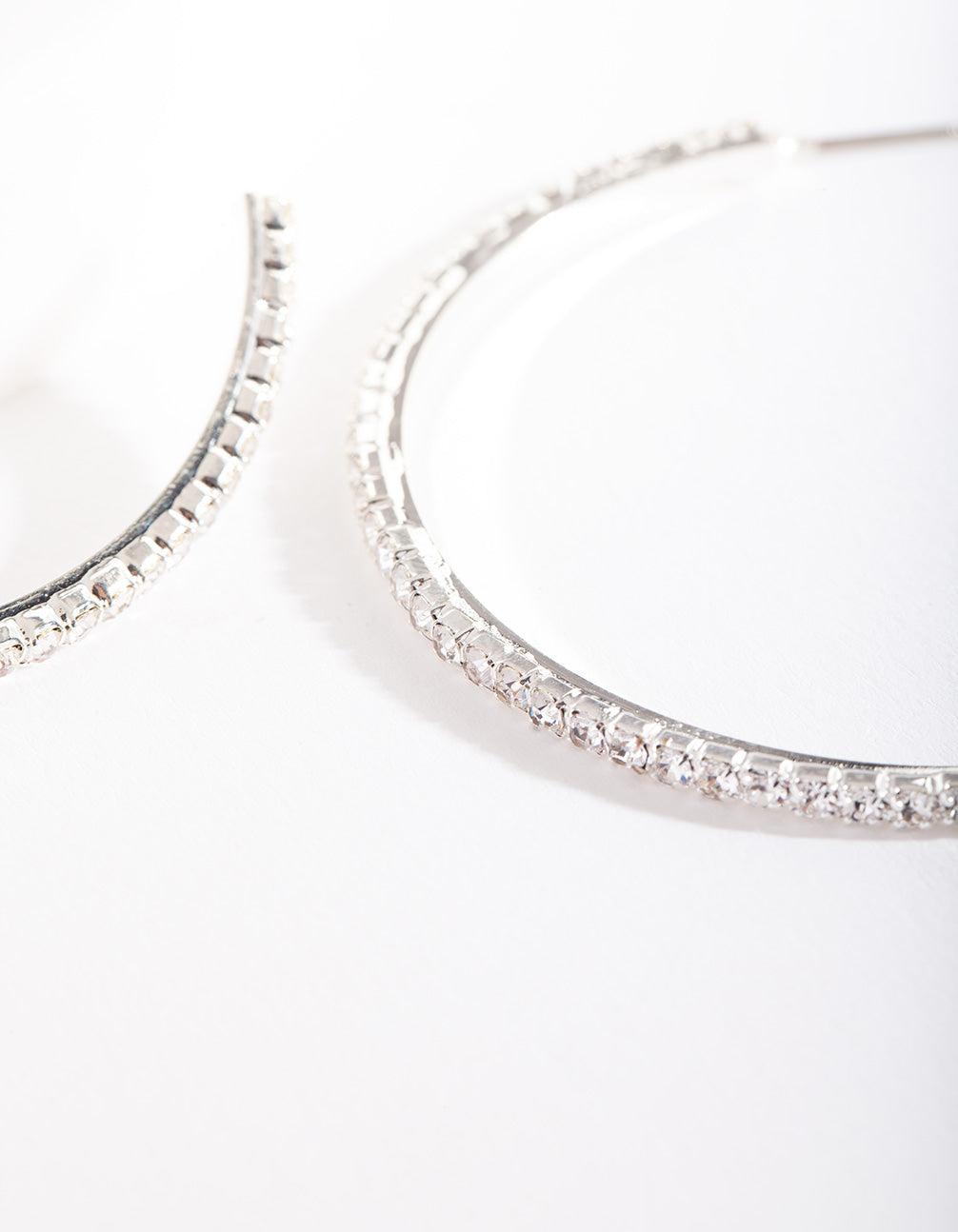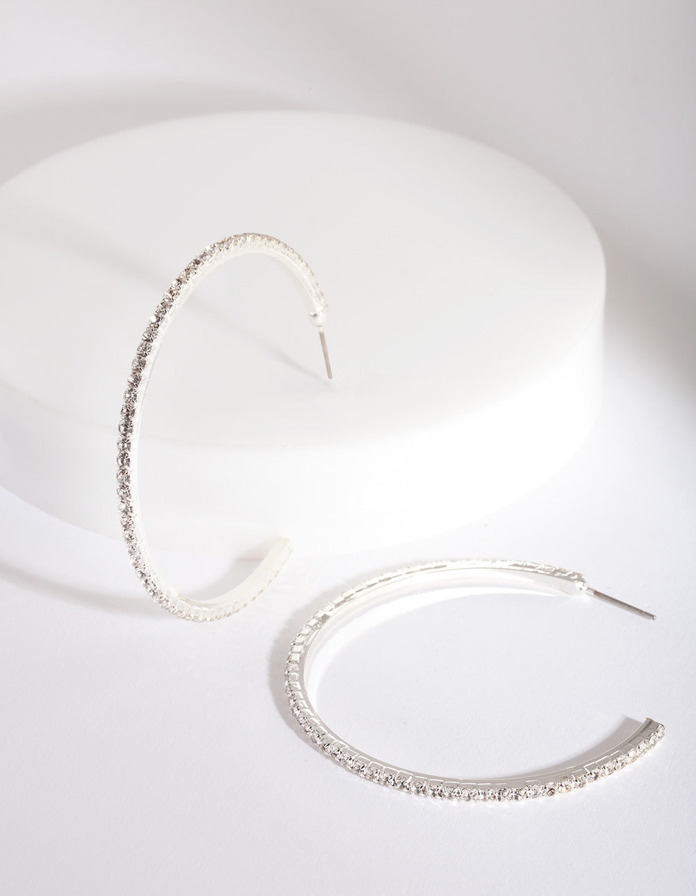 A fun pair of fashion earrings are an easy way to spice up your daily ensembles! These silver-toned hoop earrings boast a diamante embellished design.