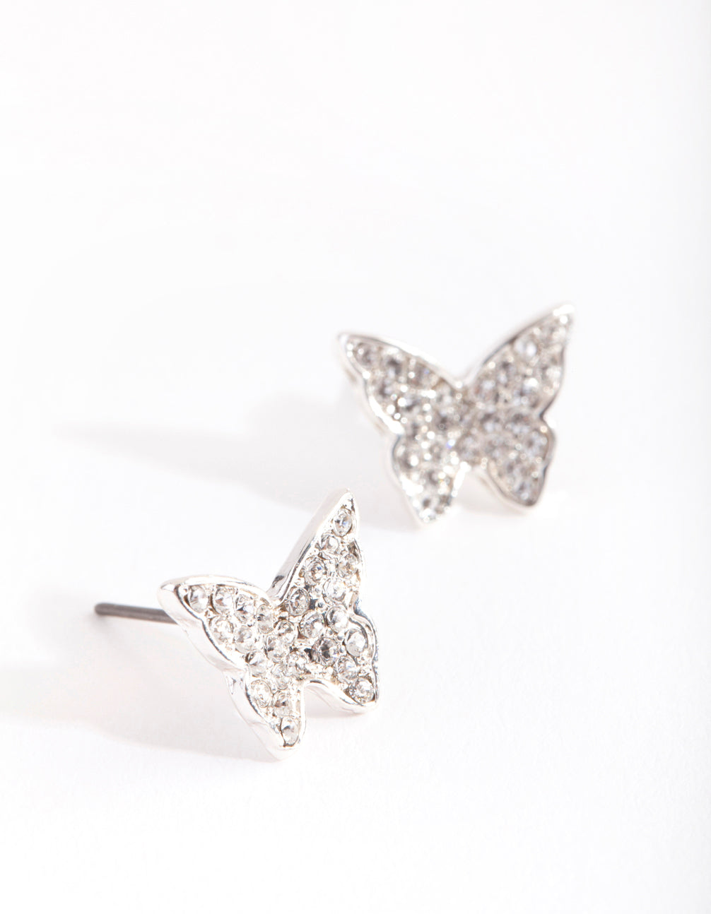 Made using diamond-simulant crystals, this pair of studs features an embellished butterfly design in a silver tone.