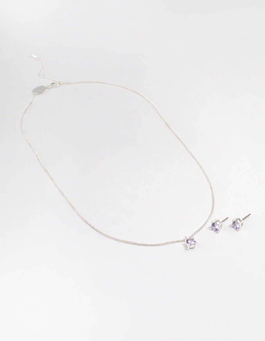 Dazzle with diamond simulants - crystals which are cut to closely resemble the colour and clarity of true diamonds. This beautiful pendant necklace boasts a perfect-cut, lilac diamond simulant. A pair of studs complete the look. Outfit sorted!