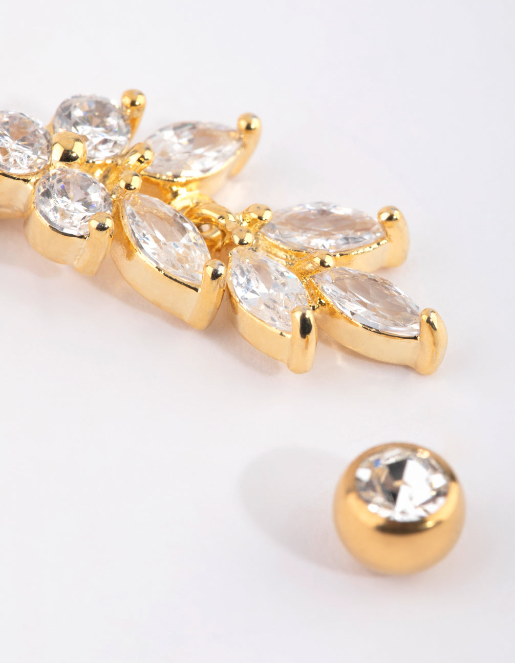 Gold Plated Titanium Marquise Diamante Belly Bar