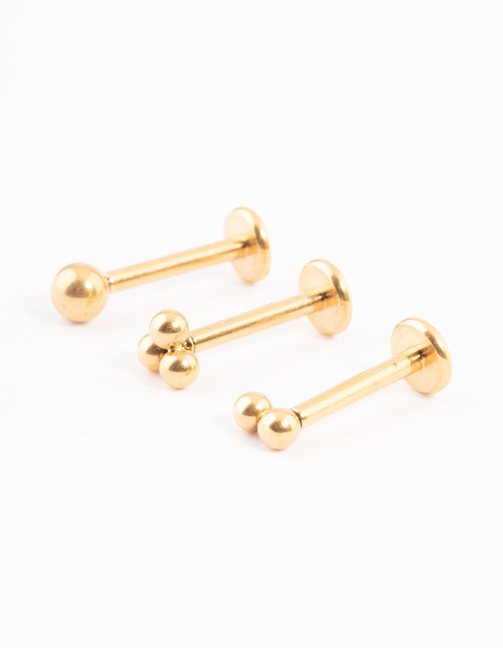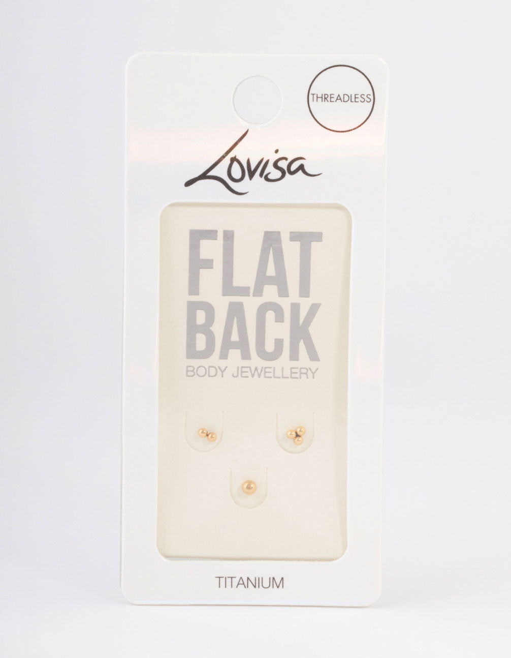 Gold Plated Titanium Trio Ball Threadless Flat Back Stud Pack