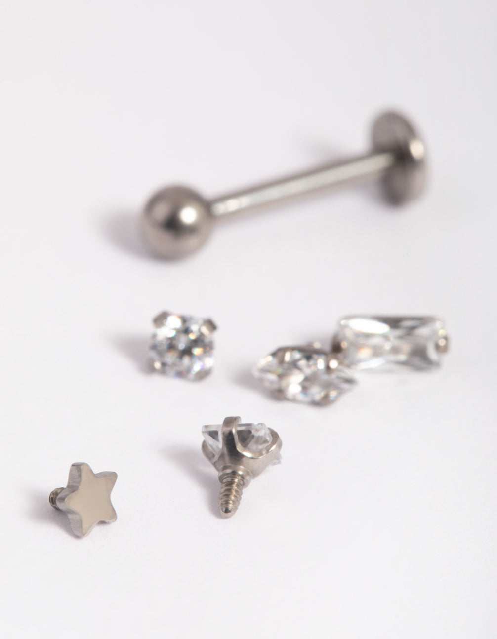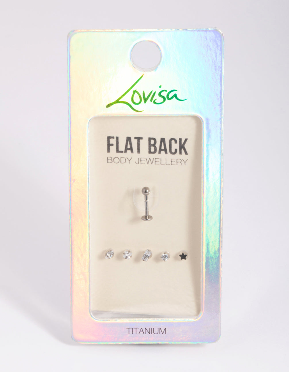 Titanium Single Flat Back Bar & Cubic Zirconia Interchangeable Ends 6-Pack
