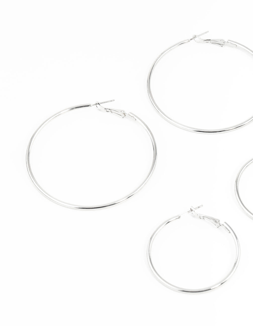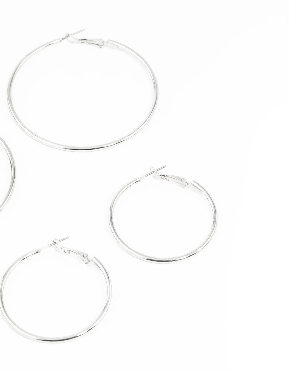 Be bold, be beautiful. This silver hoop earring set features a 2 pack of varying sizes. Classic and fabulous, these earrings are a must-have for your collection. Style with silver-toned chain layered necklaces and scattered dainty rings for an on-trend finish!