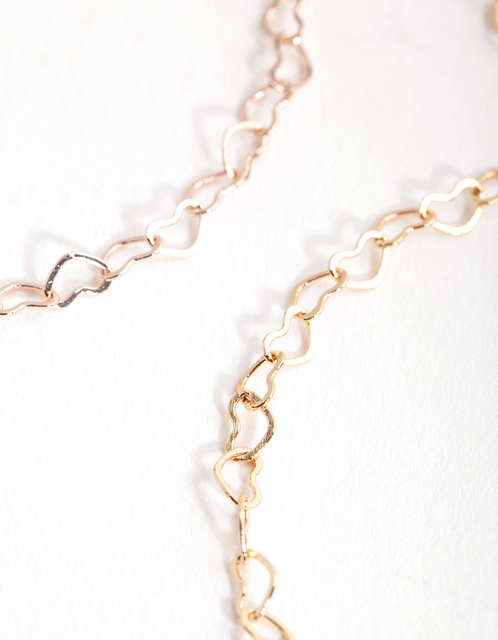 Style a beautiful bracelet stack with a fashion-forward wristwear pack! This set includes two dainty bracelets with heart-shaped chains, in a stunning rose-gold-toned and gold-toned setting. Wear them together, or separately for an elegant ensemble.