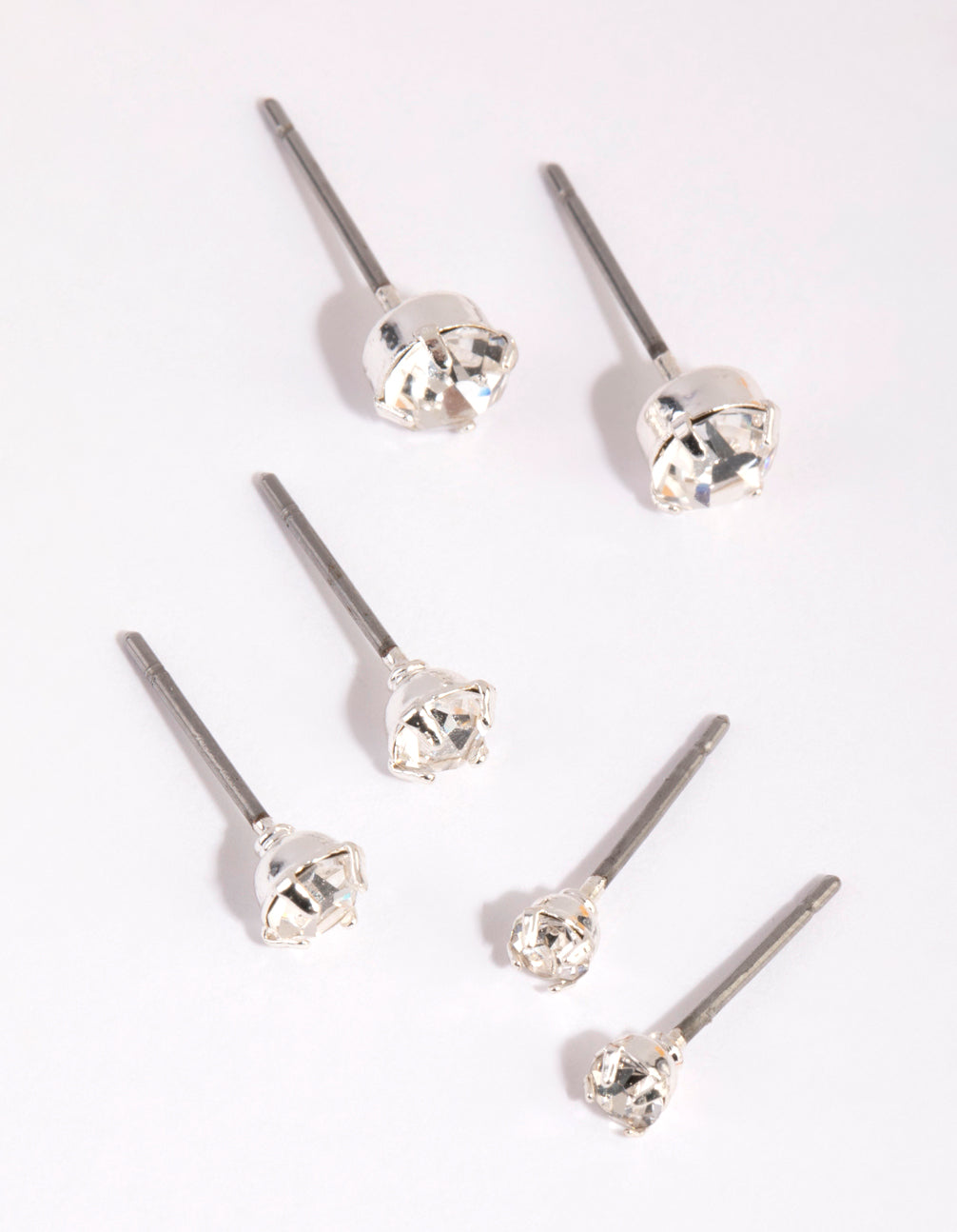 Mix them, match them, stack them! This cute silver-toned earring pack features three pairs of diamante-encrusted studs, each a different size which makes them perfect for stacking. Layer them together for maximum impact.