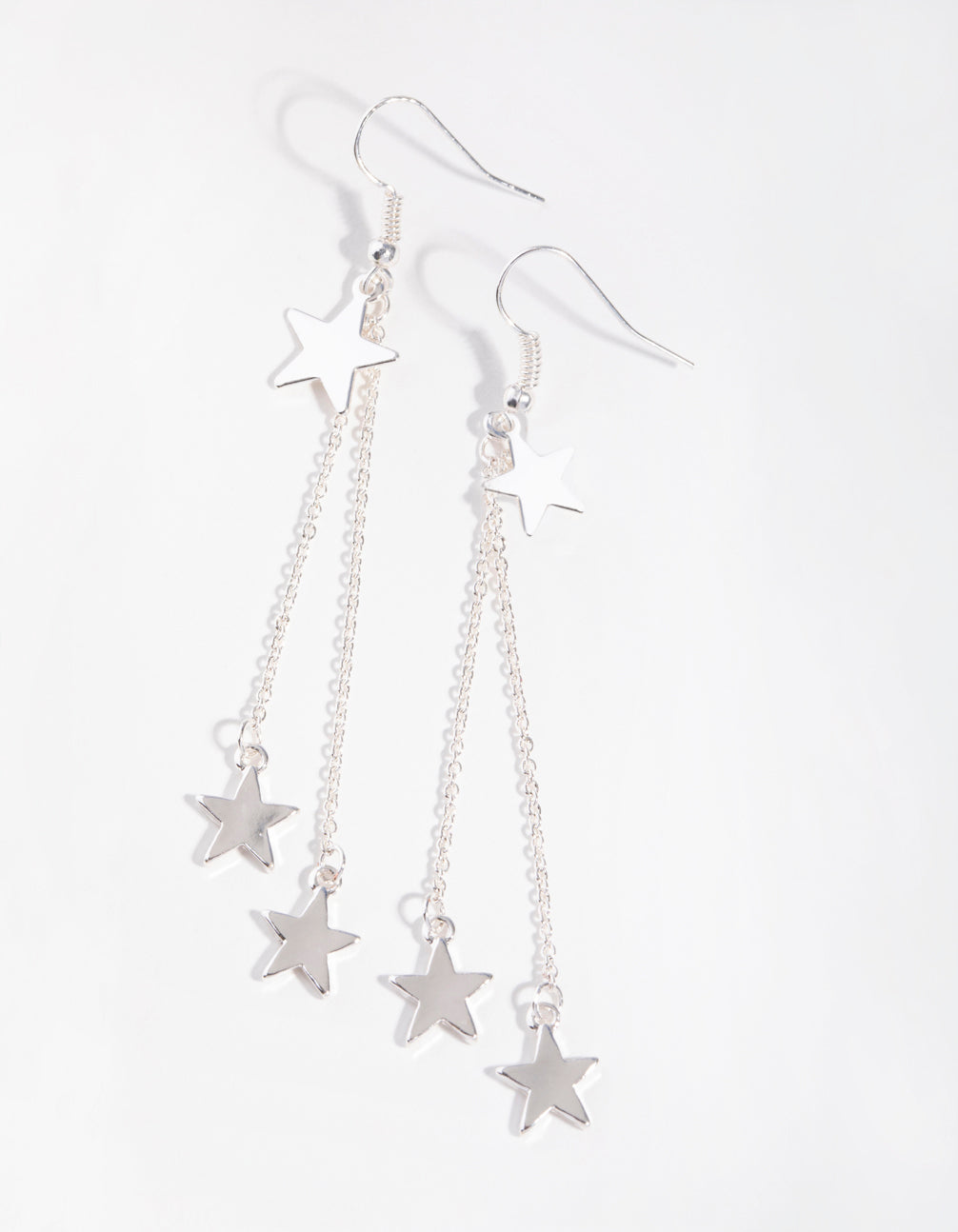 Silver Double Star Drop Earrings