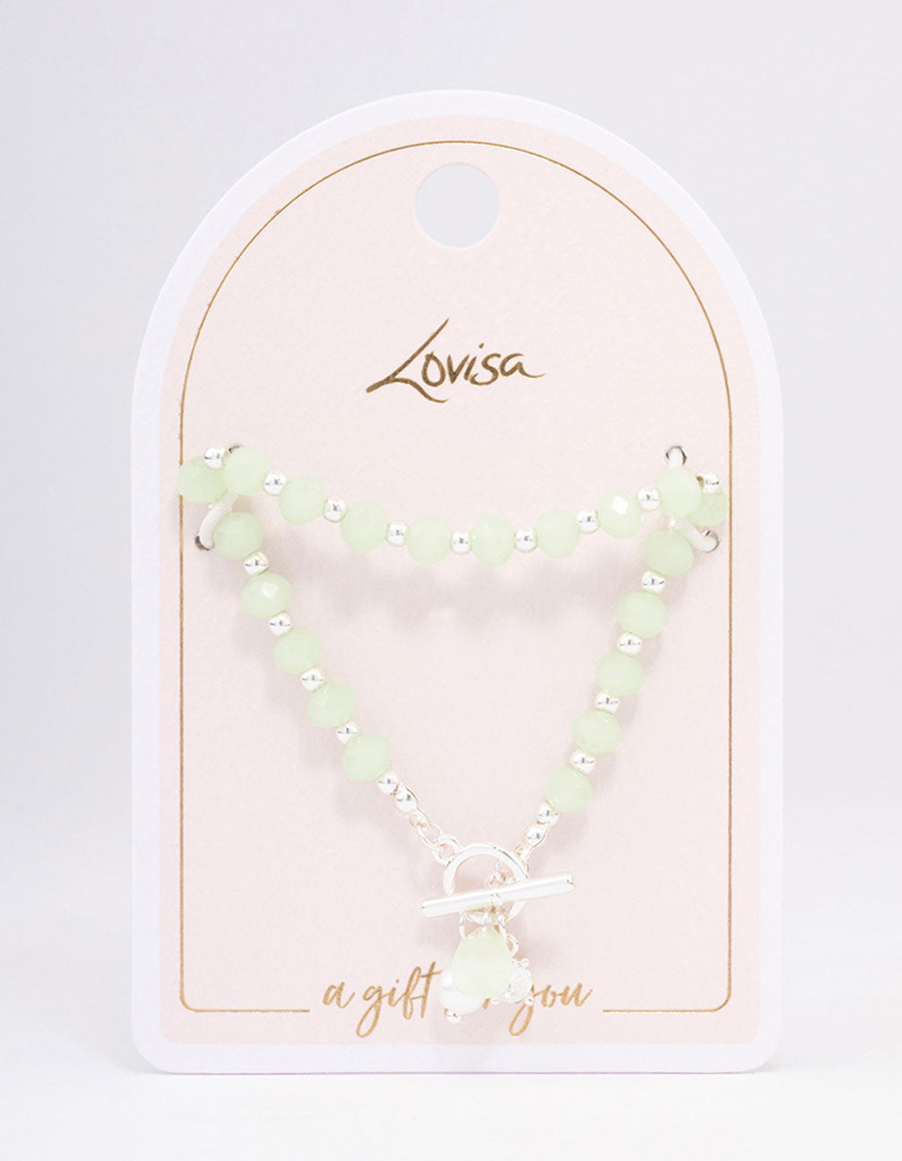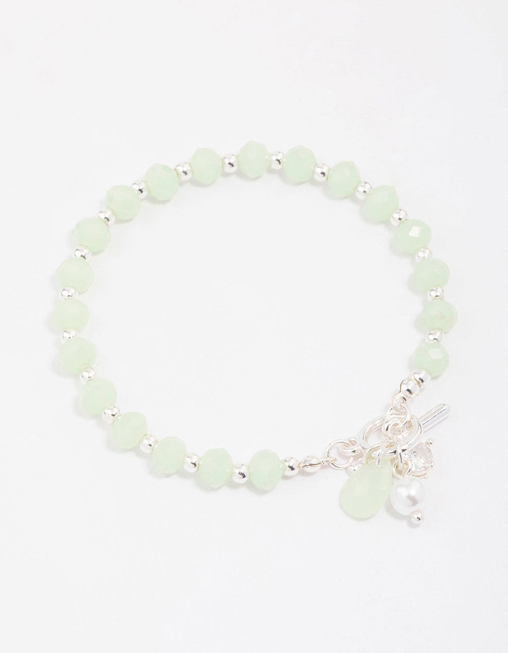 Curate your stack with this stunning, silver-toned bracelet. This stretchy bracelet is designed with a collection of jade-coloured beads, adorned with pearl accents for a refined finish.