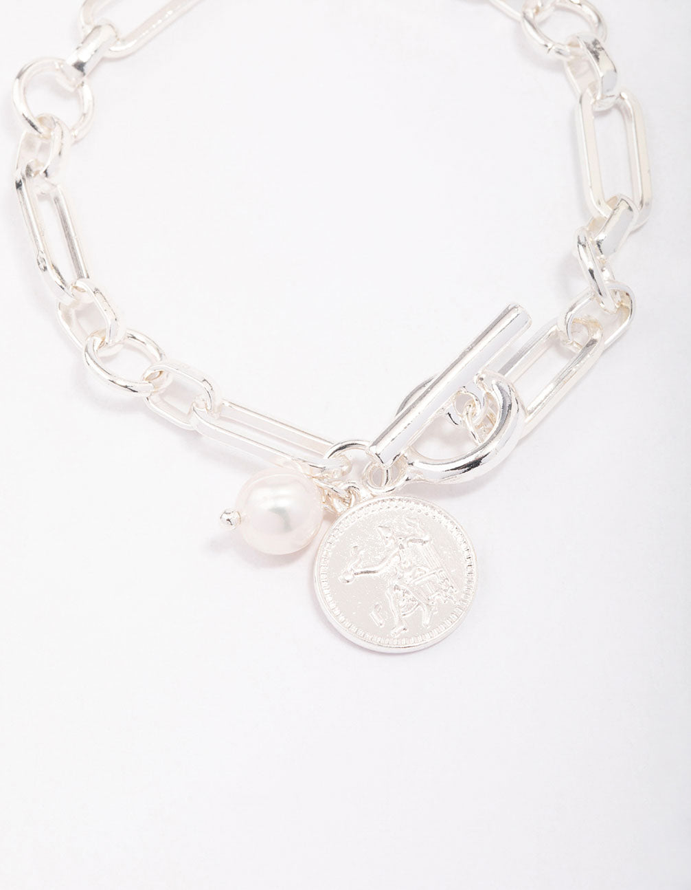 Silver Chunky Coin & Pearl Bracelet