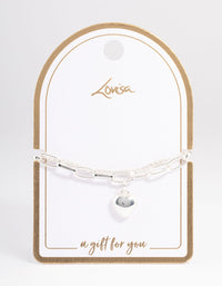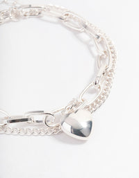 Silver Layered Chain Heart Bracelet
