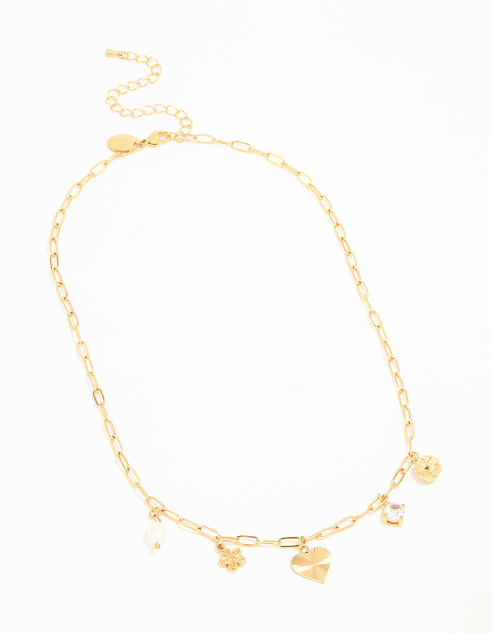 Meet the Waterproof Gold Plated Stainless Flower & Heart Charm Necklace – your new go-to for effortless style and versatility. This pendant necklace combines delicate flower and heart charms for a playful yet chic vibe. Crafted from durable stainless steel with a luxe gold plating, it's not just pretty – it's practical too! Sweat, swim, or shower – this waterproof beauty can handle it all. Perfect for every occasion, from sunny beach days to cosy brunches, it's a jewellery staple you'll never want to take off. Pair it with your favourite sundress for a breezy look or layer it with other necklaces for a stylish, stacked style. Ready to add a dash of charm to your everyday outfits? This piece has you covered!