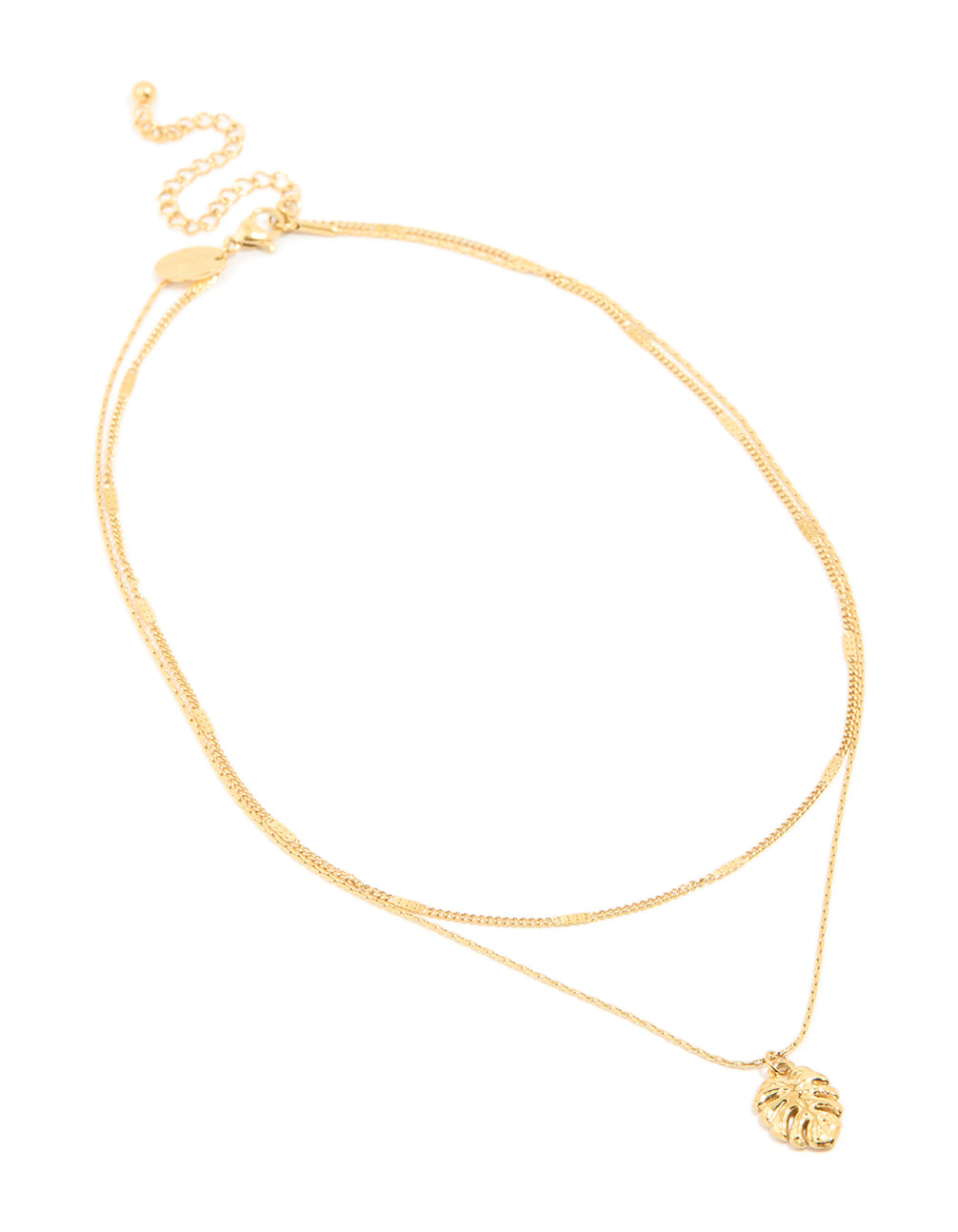 Waterproof Gold Plated Stainless Steel Chain & Leaf Layered Necklace